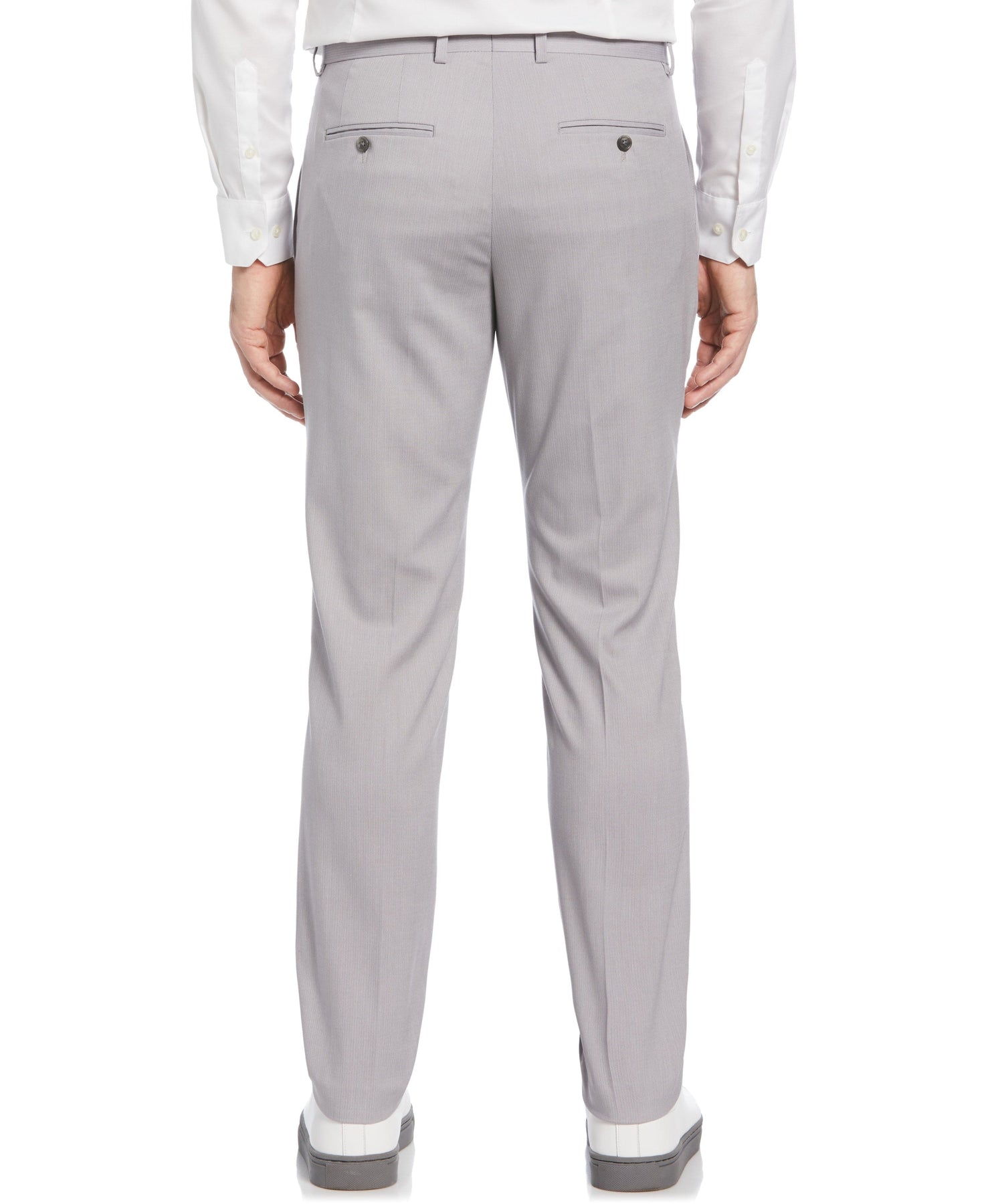 Keep your look sharp throughout the workday or at important formal events with these practical suit pants from Perry Ellis. The men's dress slacks are water-resistant to help prevent rain and spills from seeping into the material. The fabric features performance stretch to help it move with you comfortably throughout each hour of your busy day. The slim fit dress pants feature front and back pockets, as well as a hidden tech pocket that helps to keep small valuables secure while you’re on the move.