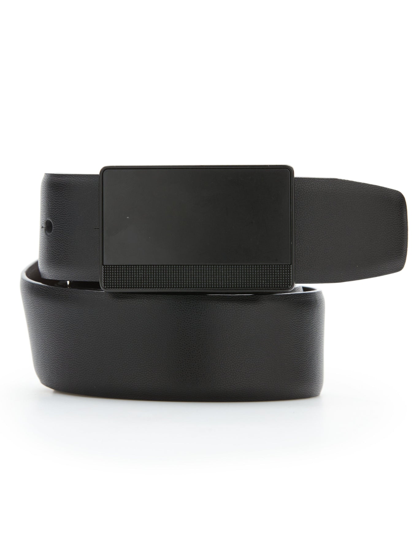 - Grained Leather Top And Lining With Matte Black Finish Plaque Swivel Buckle