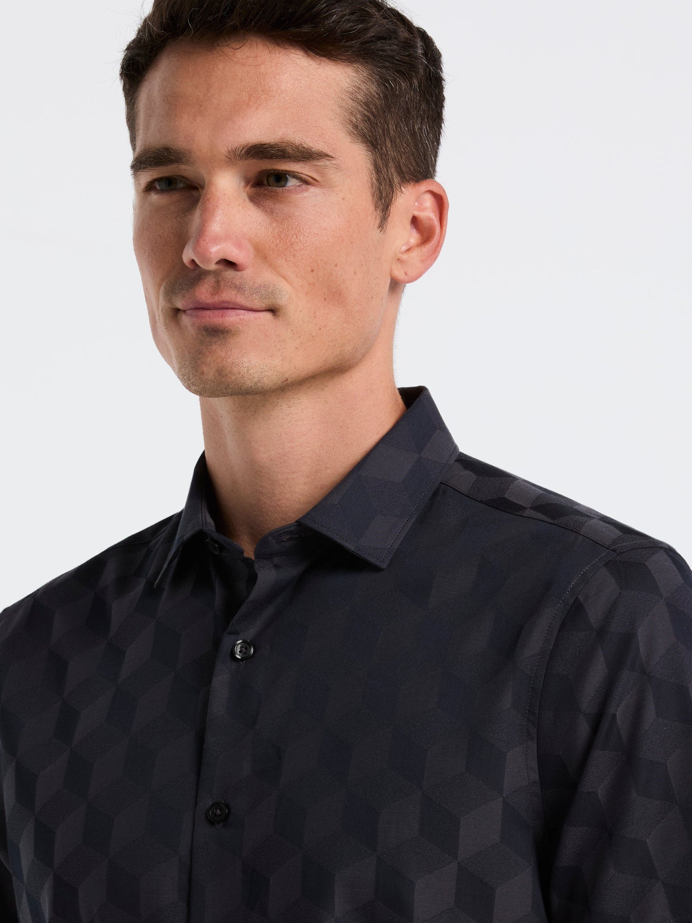 Cube Geo Jacquard Short Sleeve Shirt (Dark Sapphire)