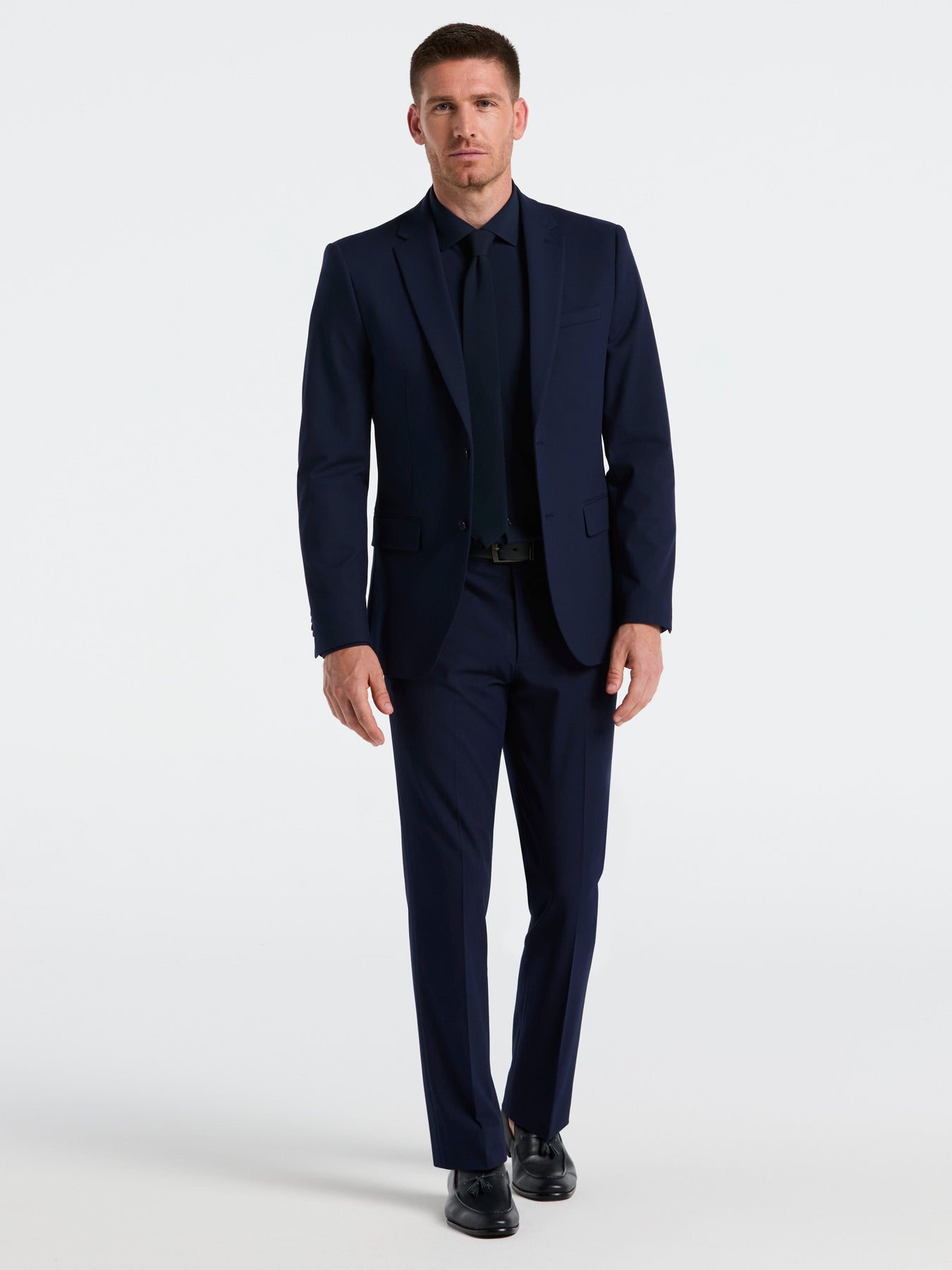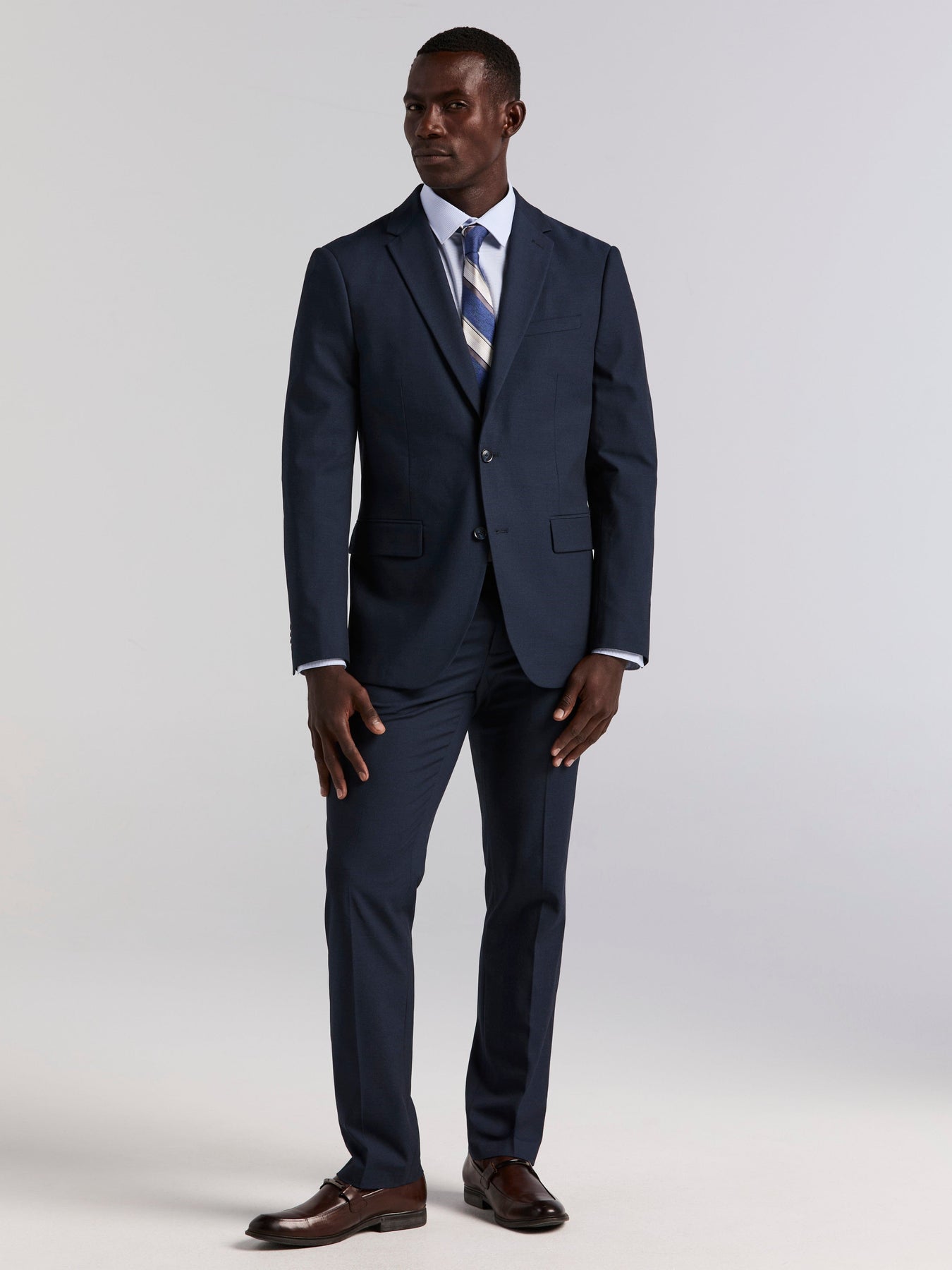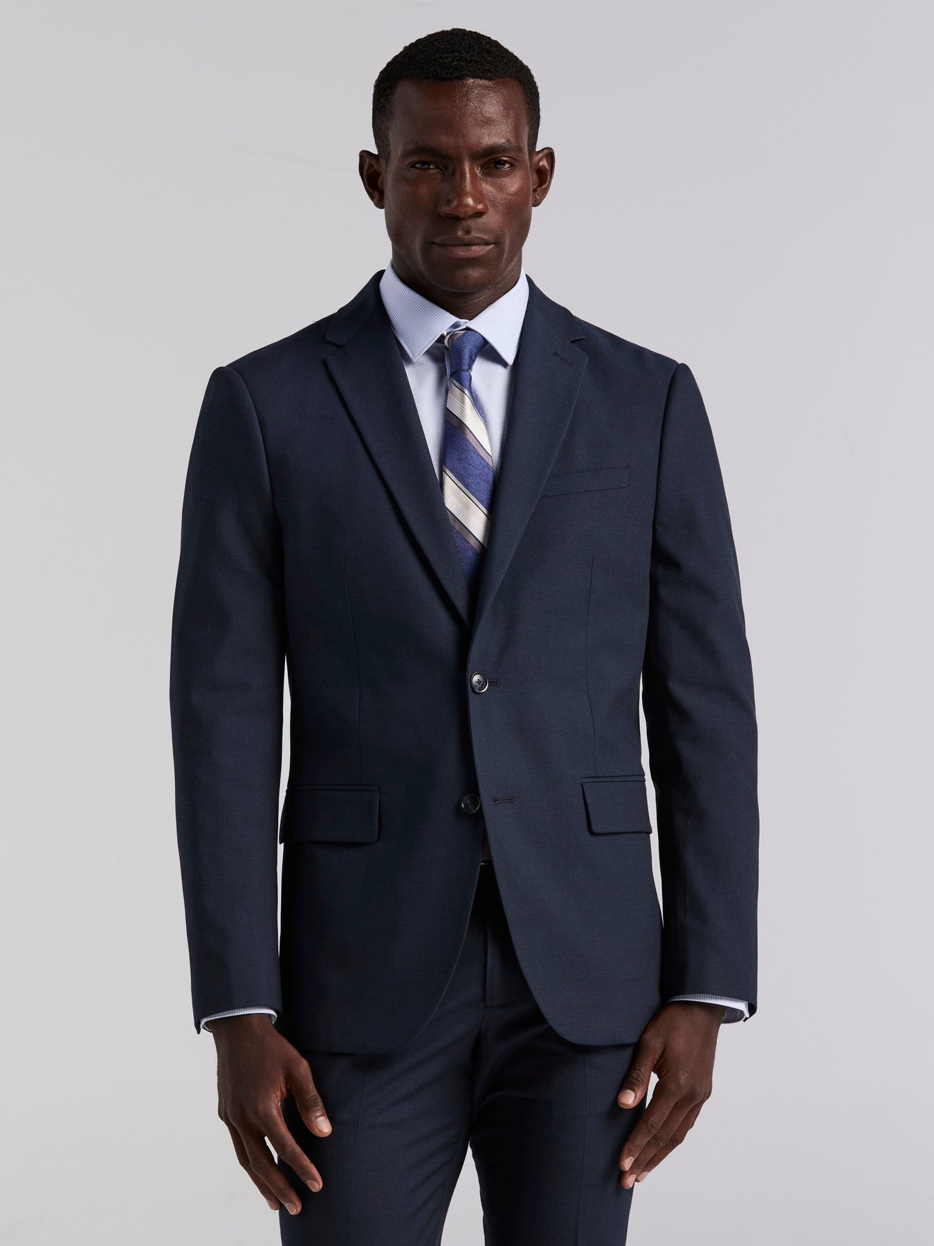 Stylish and comfortable, this suit jacket has a slim fit for a sleek, modern silhouette that elevates your look. Ideal as a dinner jacket, for work or as formal attire, this blazer for men is designed with dobby fabric that has raised geometric patterns for added texture and style. This suit jacket also features four-way stretch and is wrinkle-resistant for easy care, comfort and convenience.