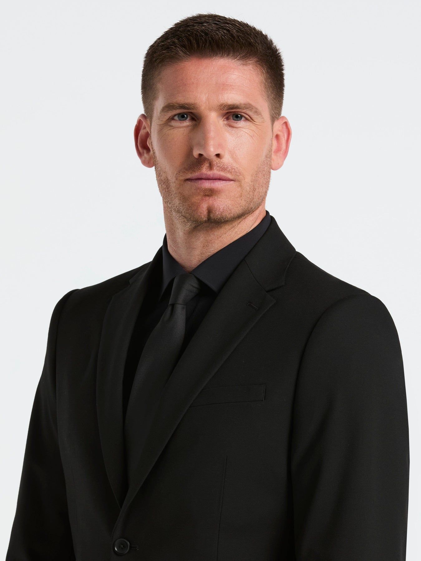 Stylish and comfortable, this suit jacket has a slim fit for a sleek, modern silhouette that elevates your look. Ideal as a dinner jacket, for work or as formal attire, this blazer for men is designed with dobby fabric that has raised geometric patterns for added texture and style. This suit jacket also features four-way stretch and is wrinkle-resistant for easy care, comfort and convenience.