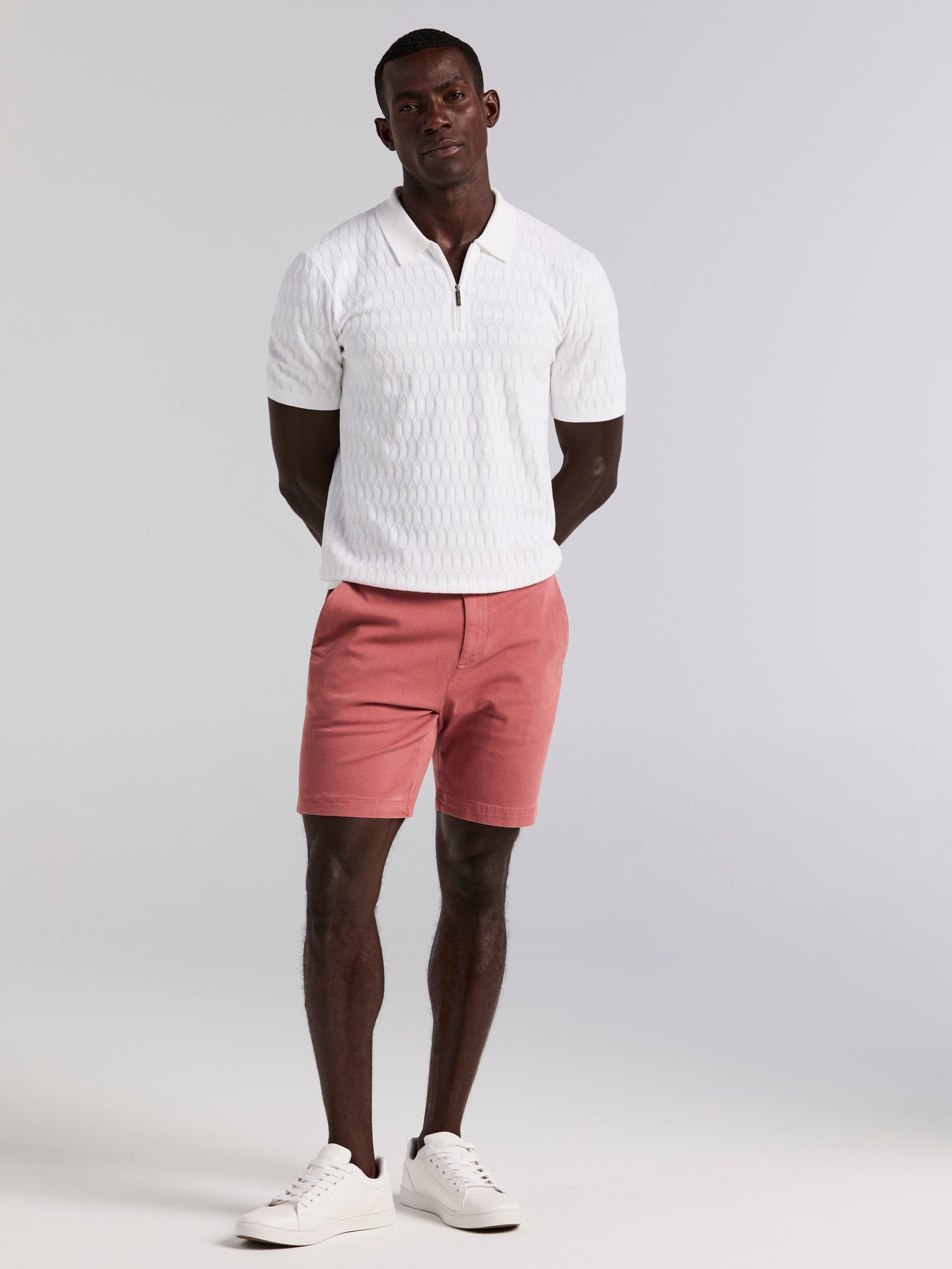 Elevate your casual wardrobe with the Men's Geometric Pattern Zip Polo Sweater from Perry Ellis. Crafted from a premium blend of cotton and modal, this men's polo sweater offers exceptional softness and comfortable, breathable wear for any occasion. The eye-catching geometric pattern provides a modern aesthetic, while the stylish zip polo collar allows for customizable comfort and a sleek finish. Designed with short sleeves, this versatile men's knit top is perfect for transitional weather, easily pairing with anything from tailored shorts to relaxed trousers. Discover effortless style and confident appeal with this fresh update to your everyday look.