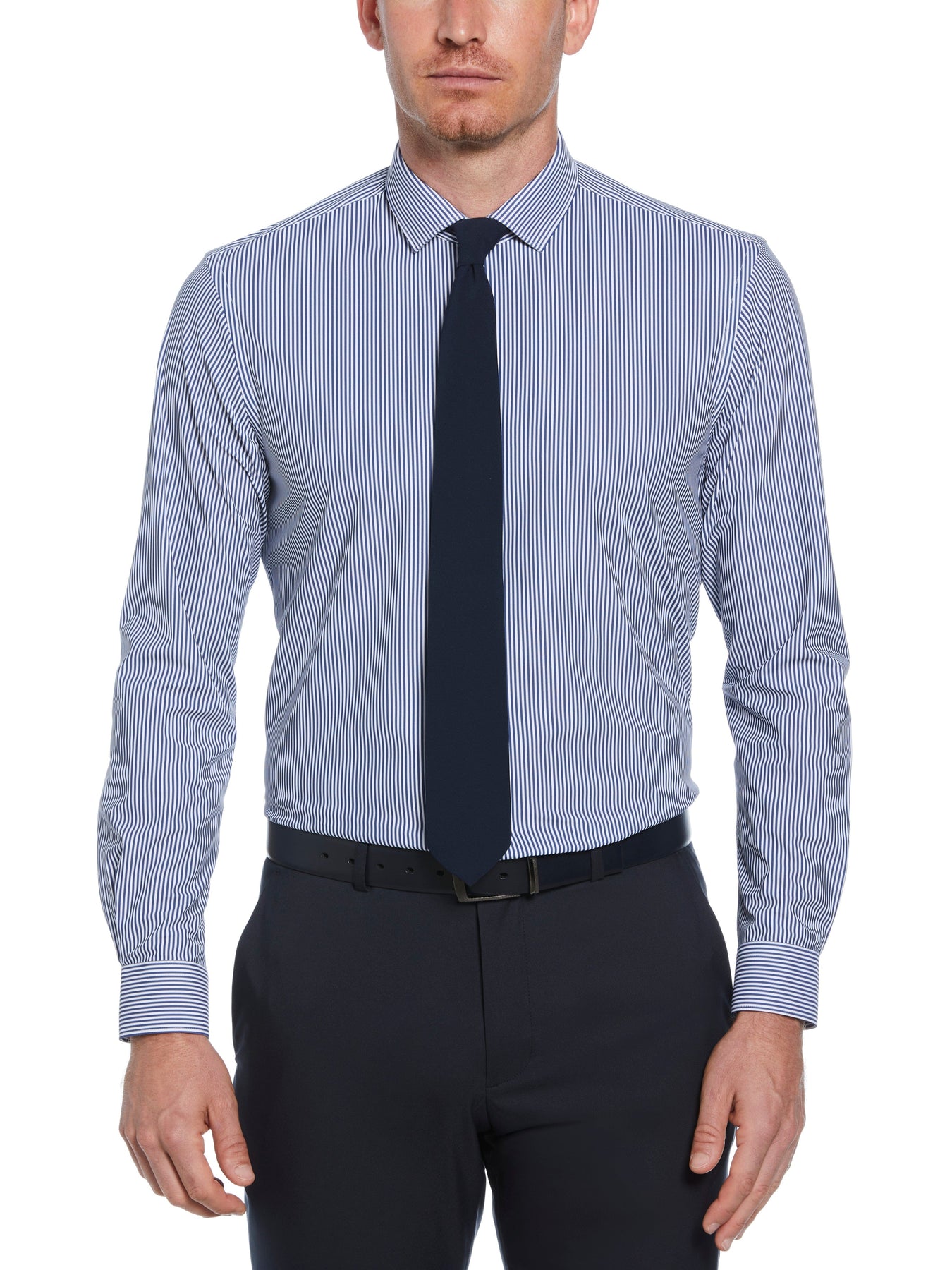 This Perry Ellis men's long sleeve shirt makes a great addition to any closet. Featuring a stripe print, this long sleeve button-up shirt has a classic look you can dress up or down with ease. Plus, the slim fit gives this button down shirt a modern look for added style.
