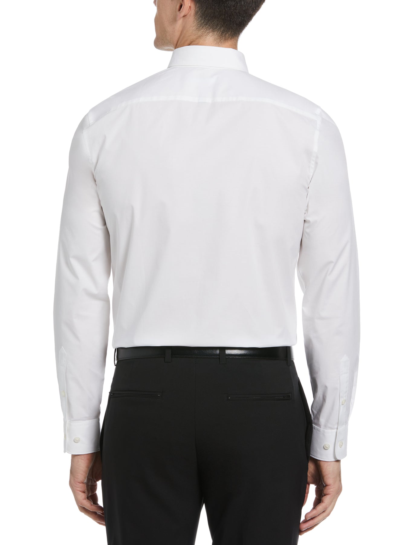 Dress for success in all you do in this men's button-up shirt from Perry Ellis. The lightweight cotton poplin fabric has a slightly ribbed texture that elevates the style of the dress shirt. Enhanced with stretch to keep you comfortable, you can wear it to the office or for special occasions and know you look as good you feel.