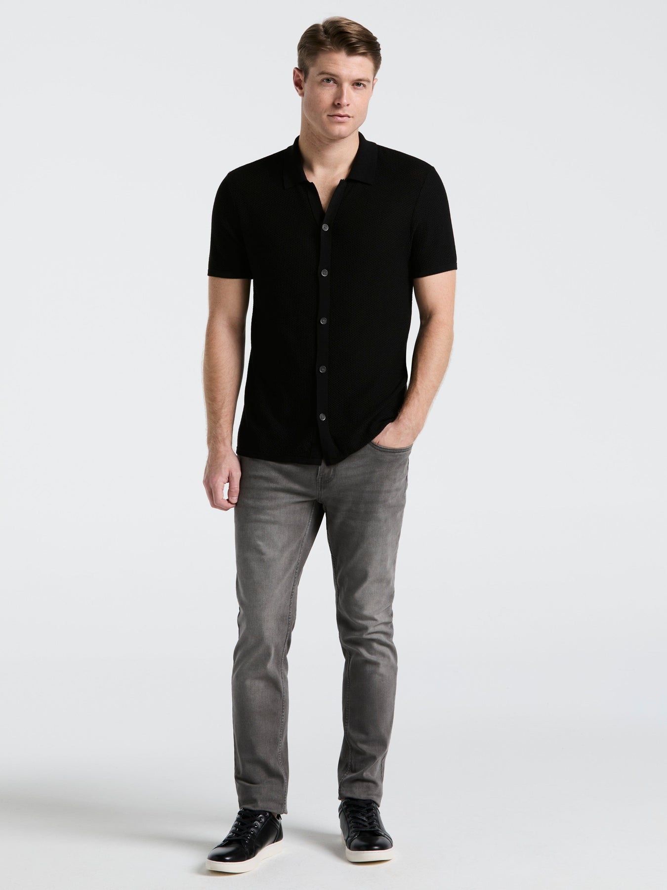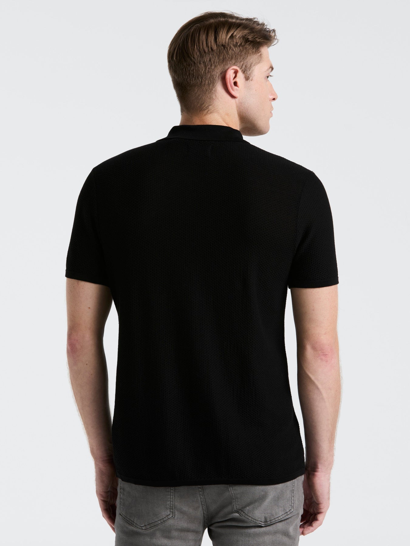 Take your style up a notch with this Perry Ellis men's polo that proves quality basics are never boring. Designed for fashion and form, this polo top is made with breathable mesh fabric to keep you feeling fresh and cool. Wear this button-front shirt done up with dress pants for an elevated look, or layer it open over a tee for casual polish. This men's polo is a true wardrobe powerhouse.
