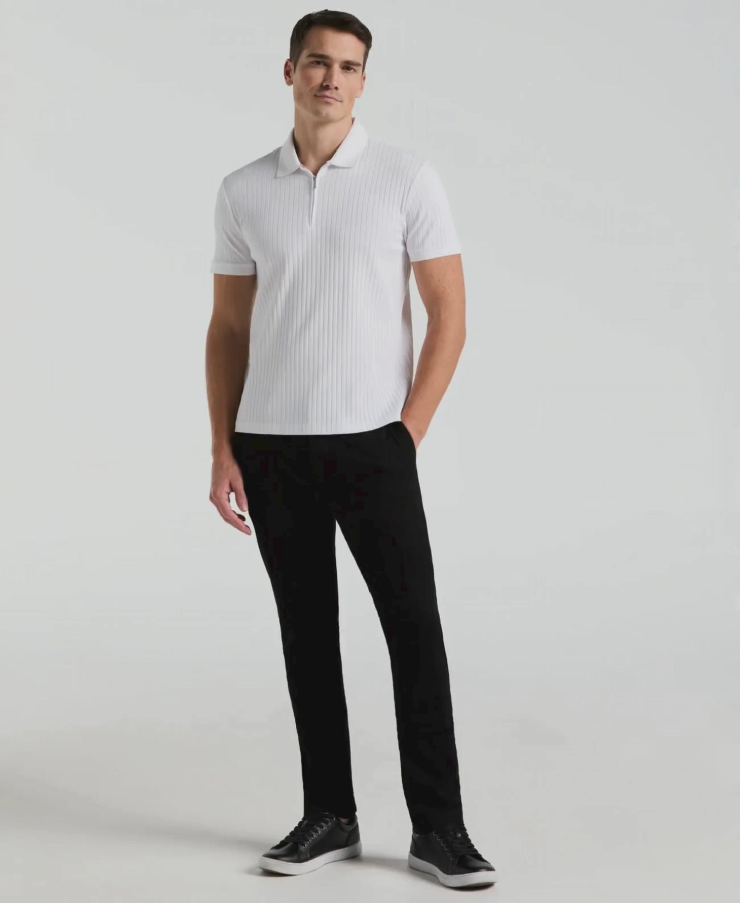Quarter Zip Ribbed Polo (Bright White)