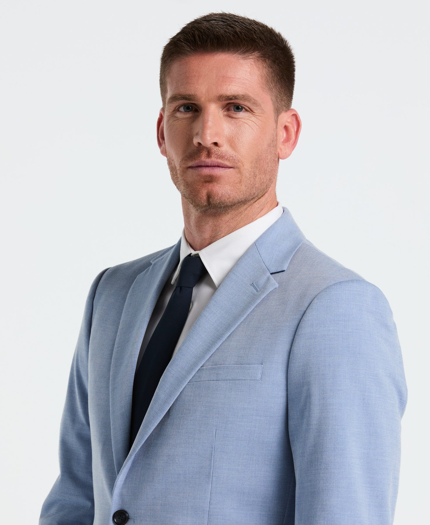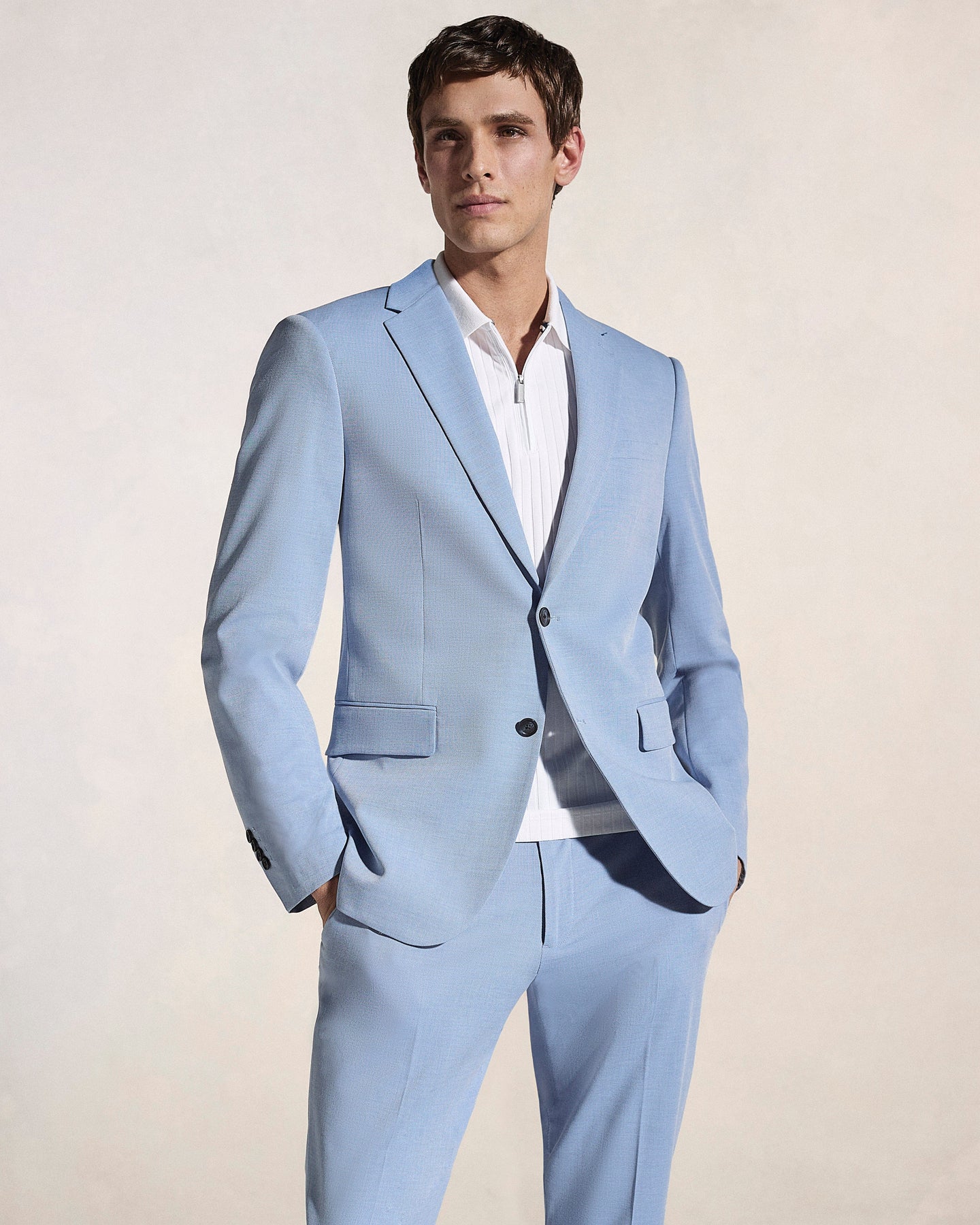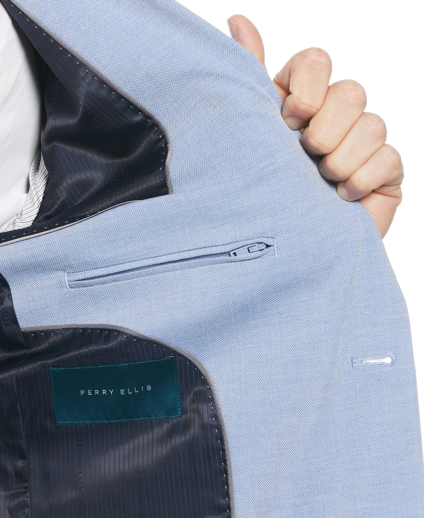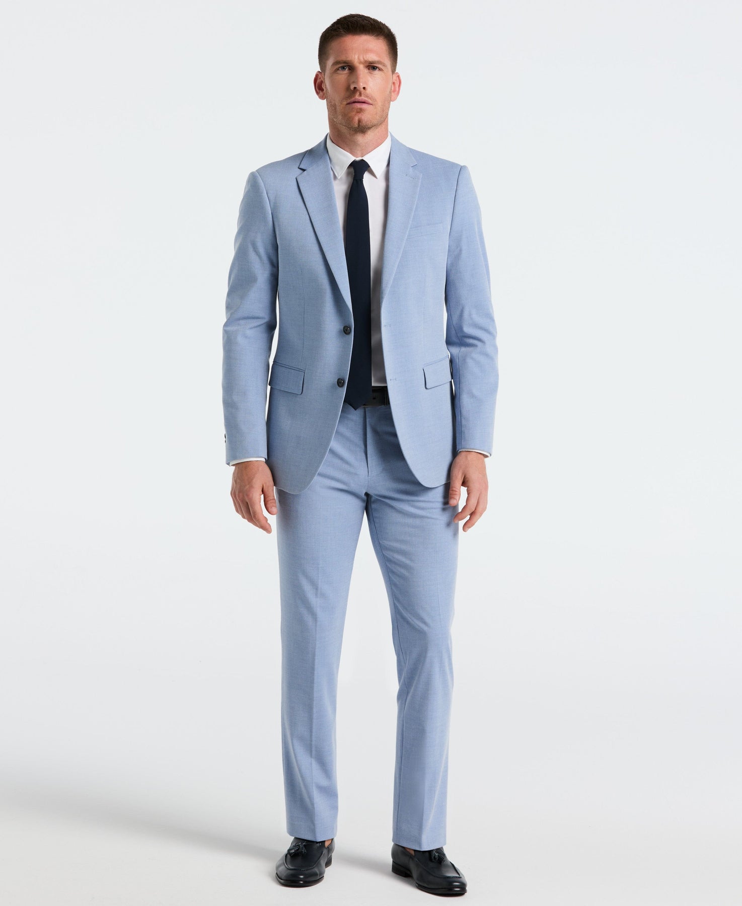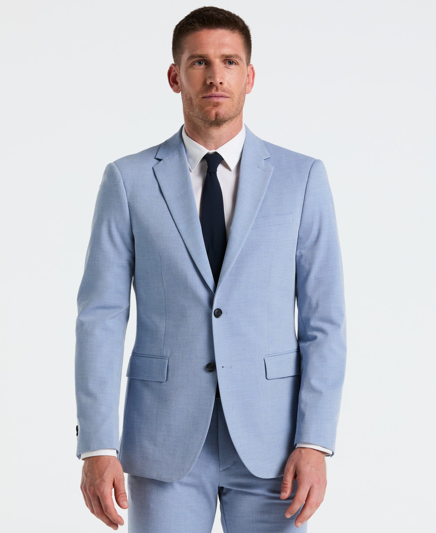 Stylish and comfortable, this suit jacket has a slim fit for a sleek, modern silhouette that elevates your look. Ideal as a dinner jacket, for work or as formal attire, this blazer for men is designed with dobby fabric that has raised geometric patterns for added texture and style. This suit jacket also features four-way stretch and is wrinkle-resistant for easy care, comfort and convenience.