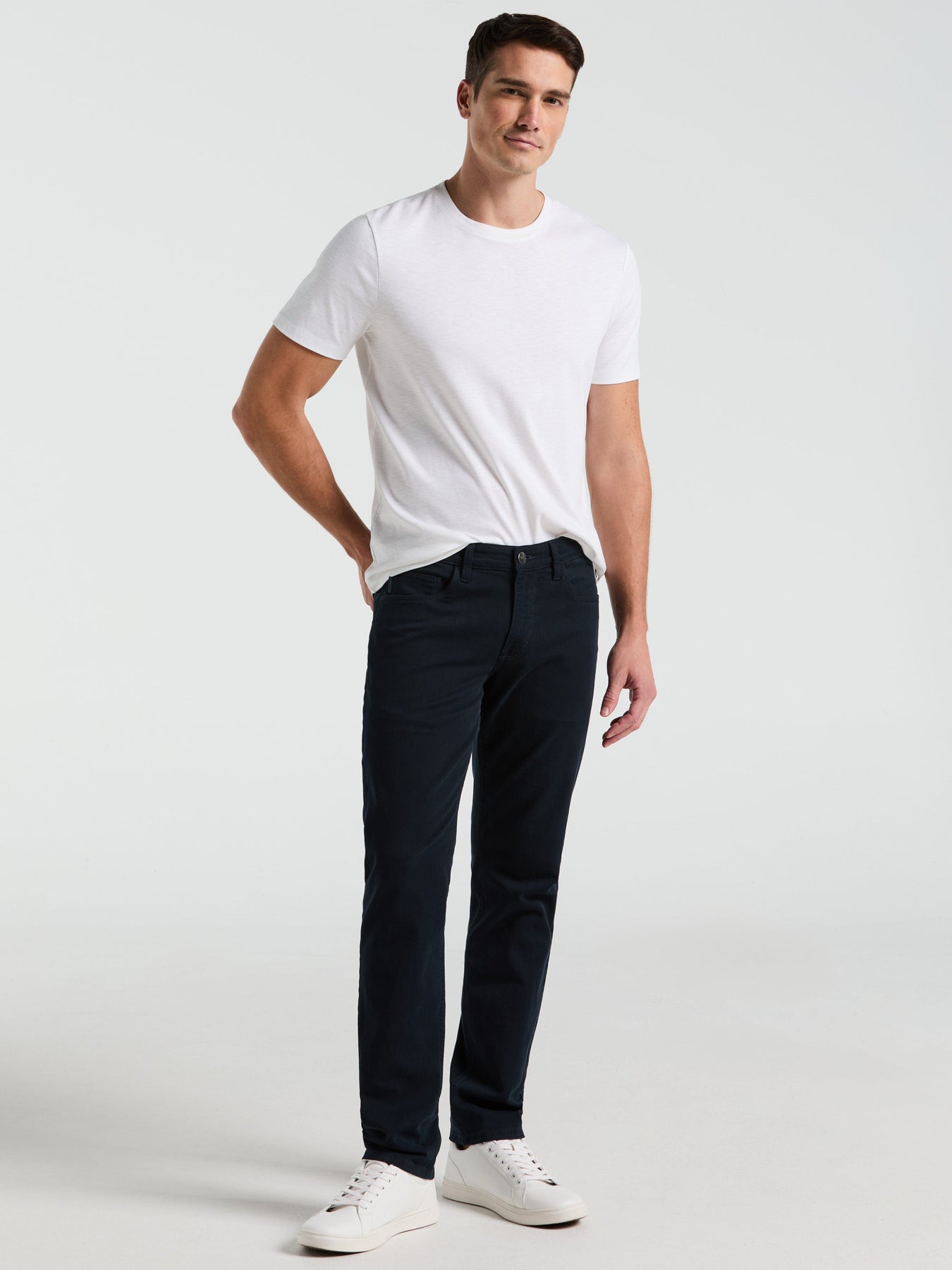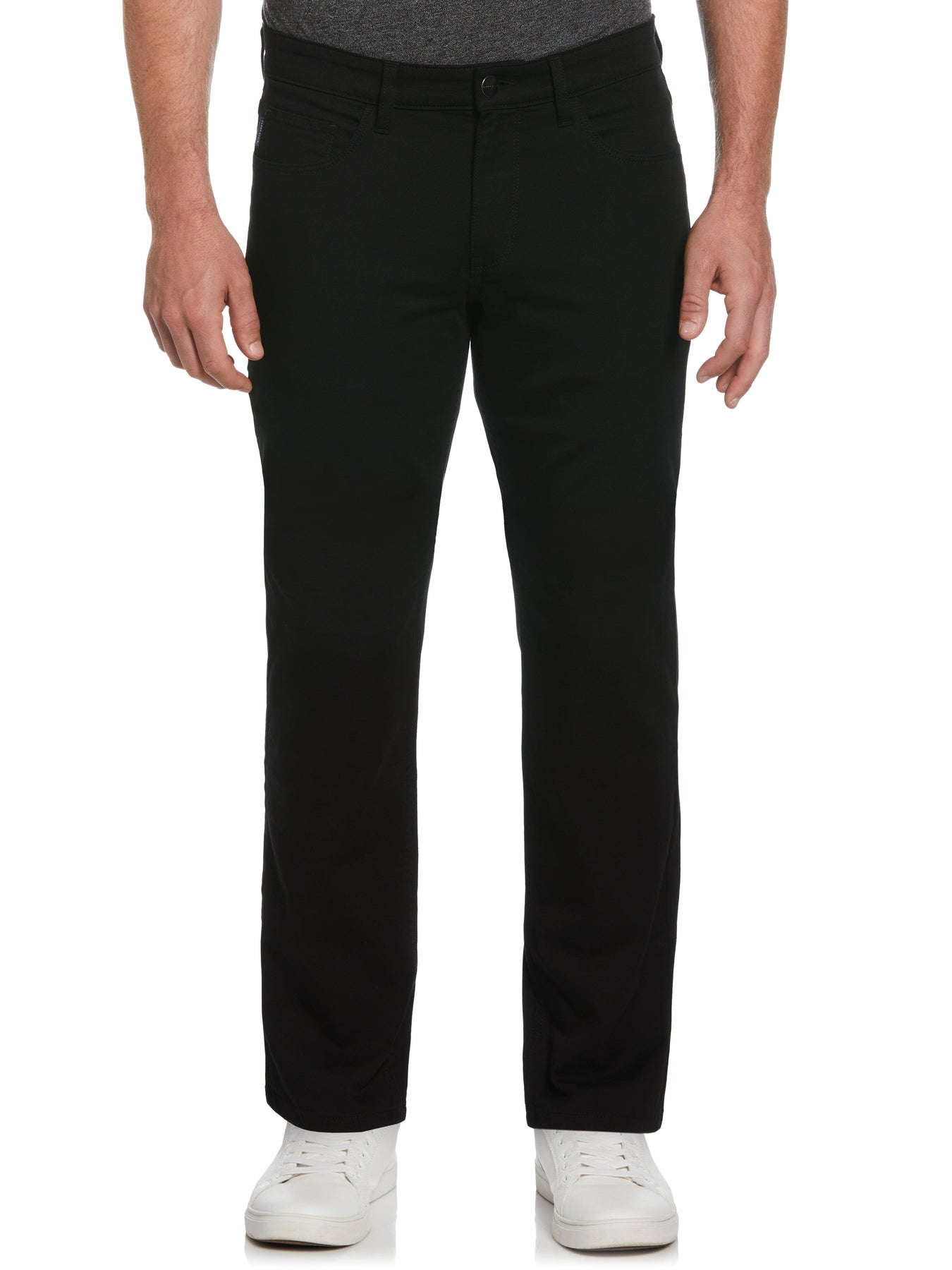 These versatile Perry Ellis trousers for men are the perfect choice to complete your look, from your weekend wear to smart-casual outfits. The classic five pocket styling pairs effortlessly with t-shirts, sweaters or button-down shirts, so you can dress these men's pants up or down as needed. The slim fit offers a flattering touch while the lightweight twill fabric with stretch makes for comfortable all-day wear.