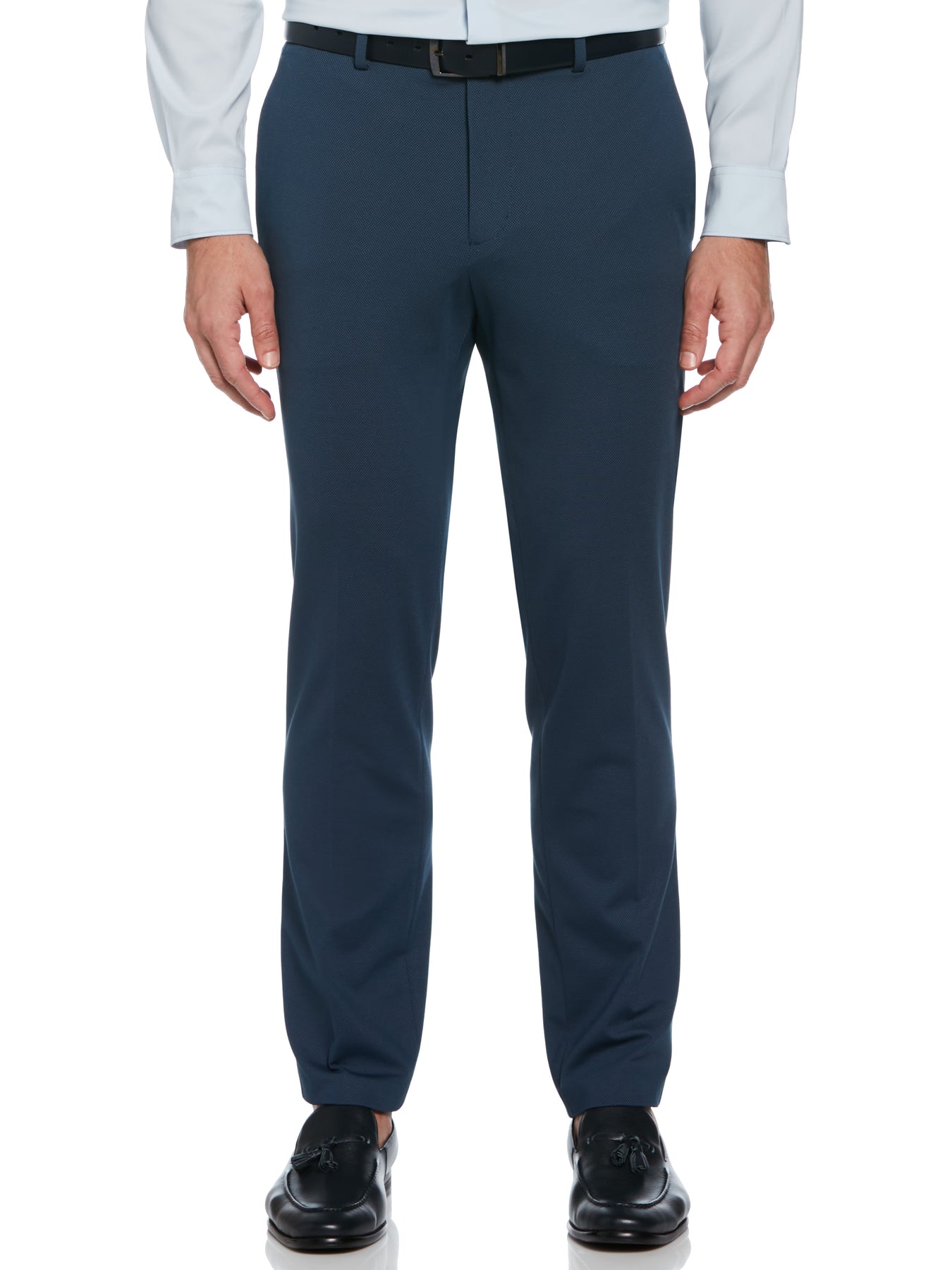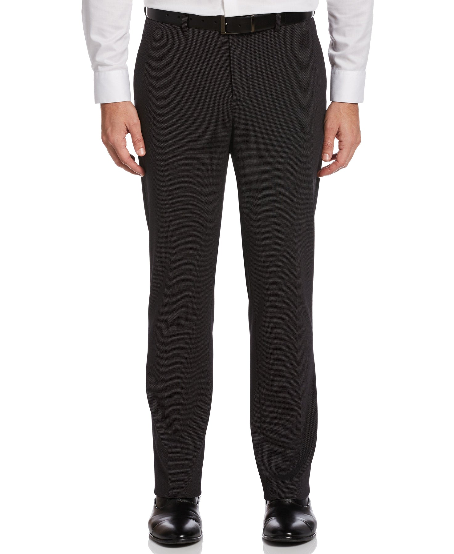 A timeless knit textured fabric adds some subtle flair to these pin dot pattern pants. Perry Ellis men's pants. A sleek slim fit and four-way stretch knit fabric ensure they feel as good as they look. For work or the weekend, these versatile men's flat front pants are always a good fit.