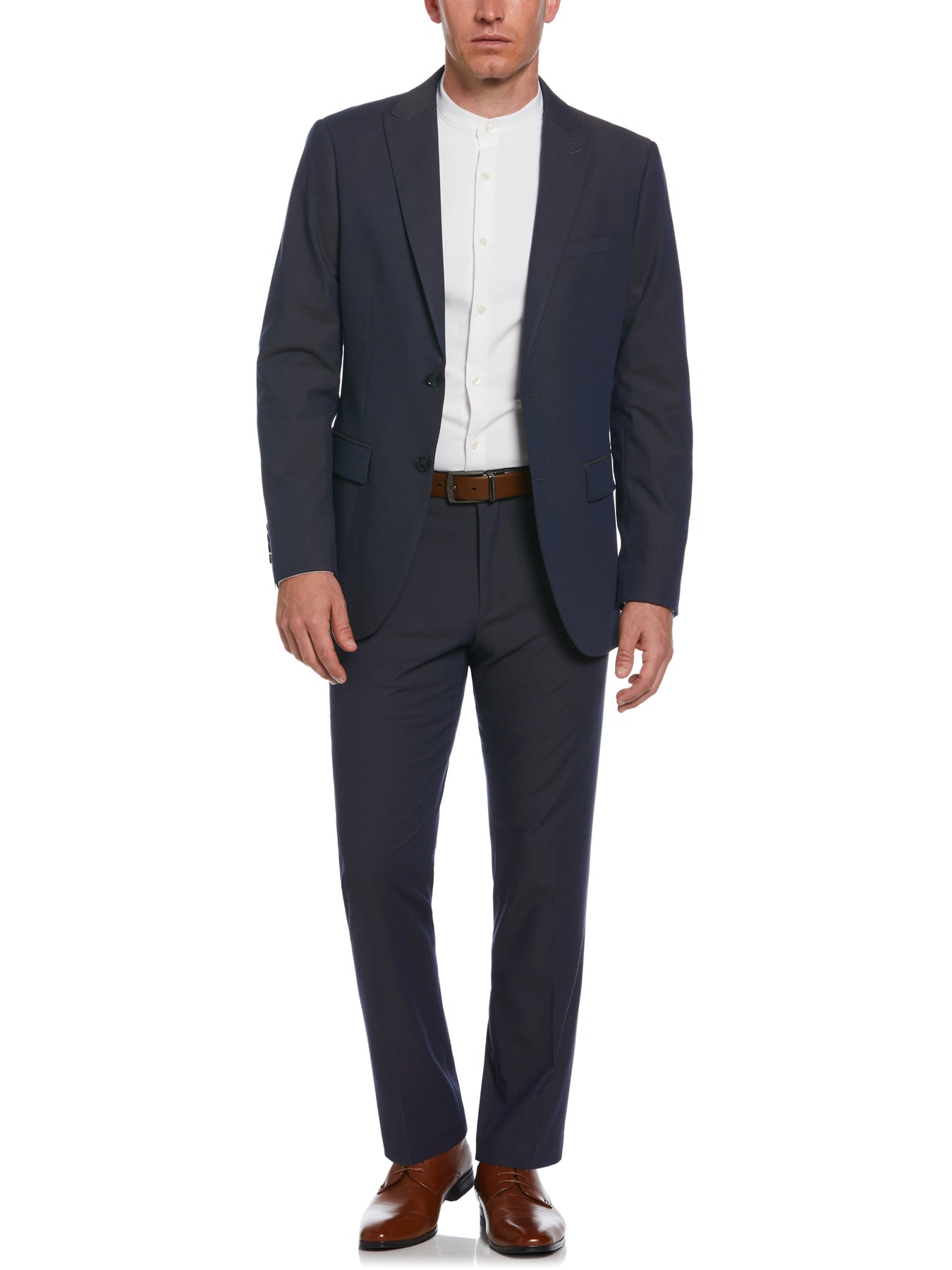 This Perry Ellis men's suit jacket is a fashionable finishing layer that reflects your polished style. The textured dobby fabric is enhanced with four-way stretch for a flexible fit that moves with you and the slim fit creates a sleek, modern silhouette. Wear this versatile suit jacket to instantly dress up a casual outfit or use it to complement more formal attire.