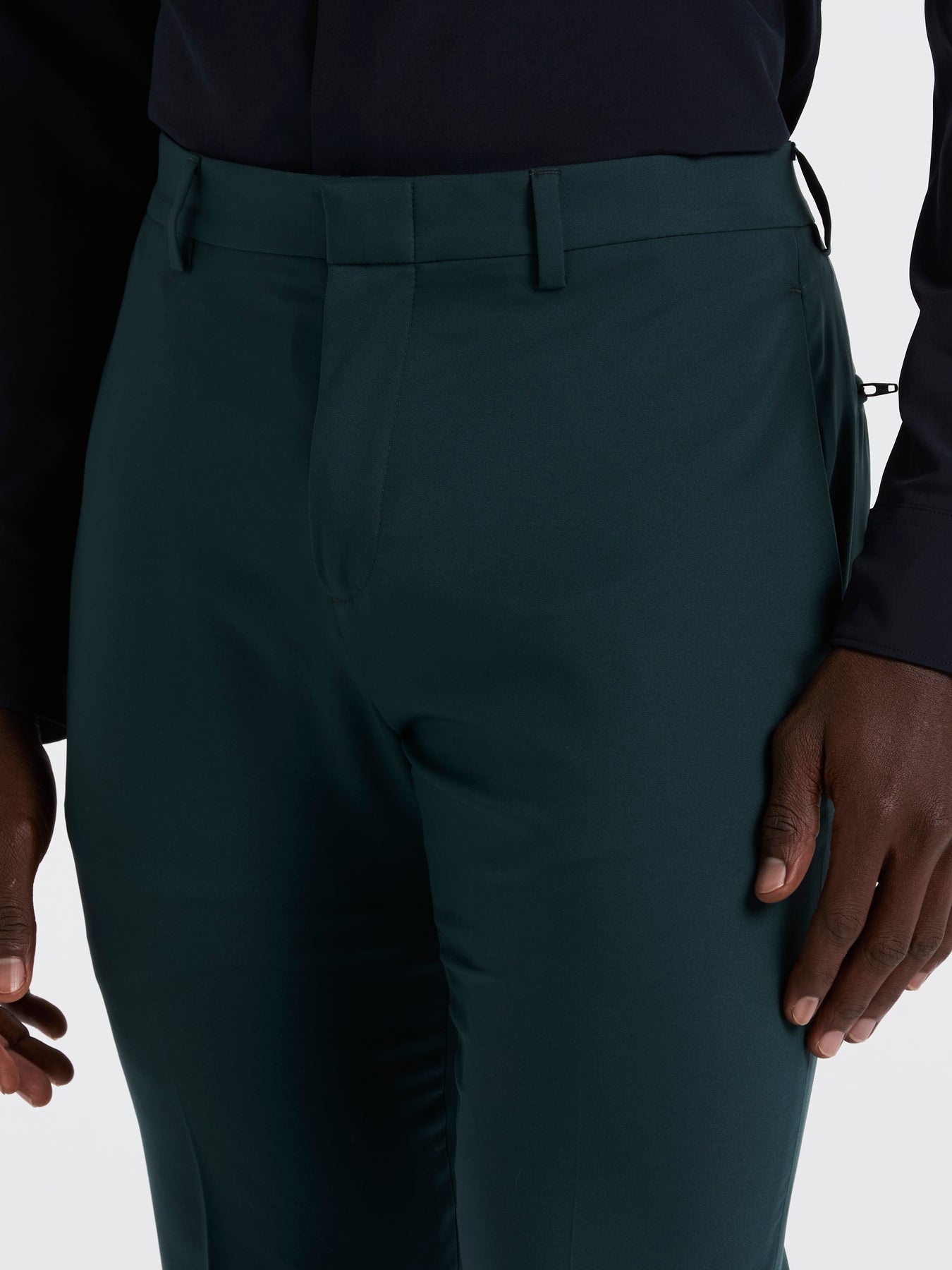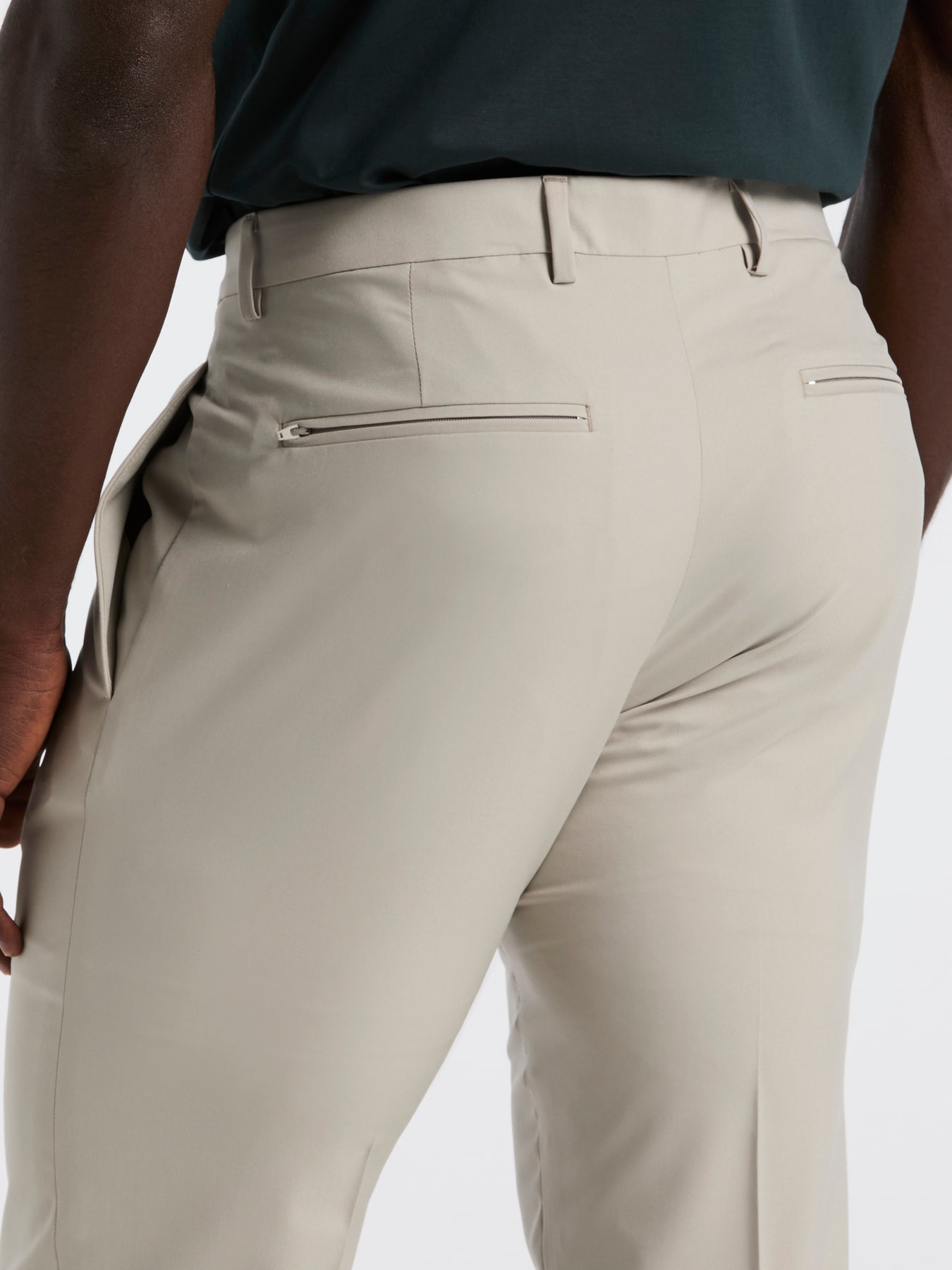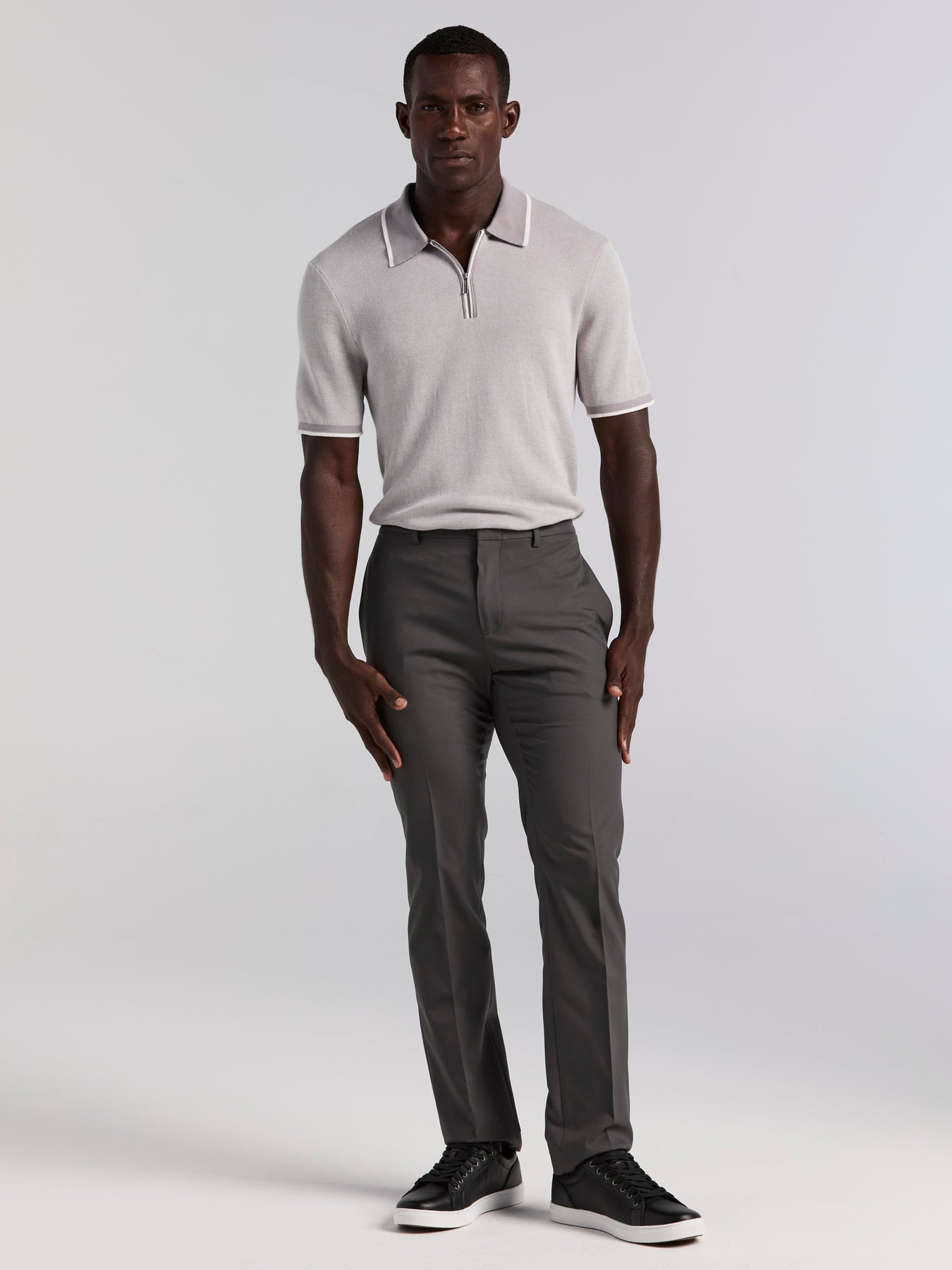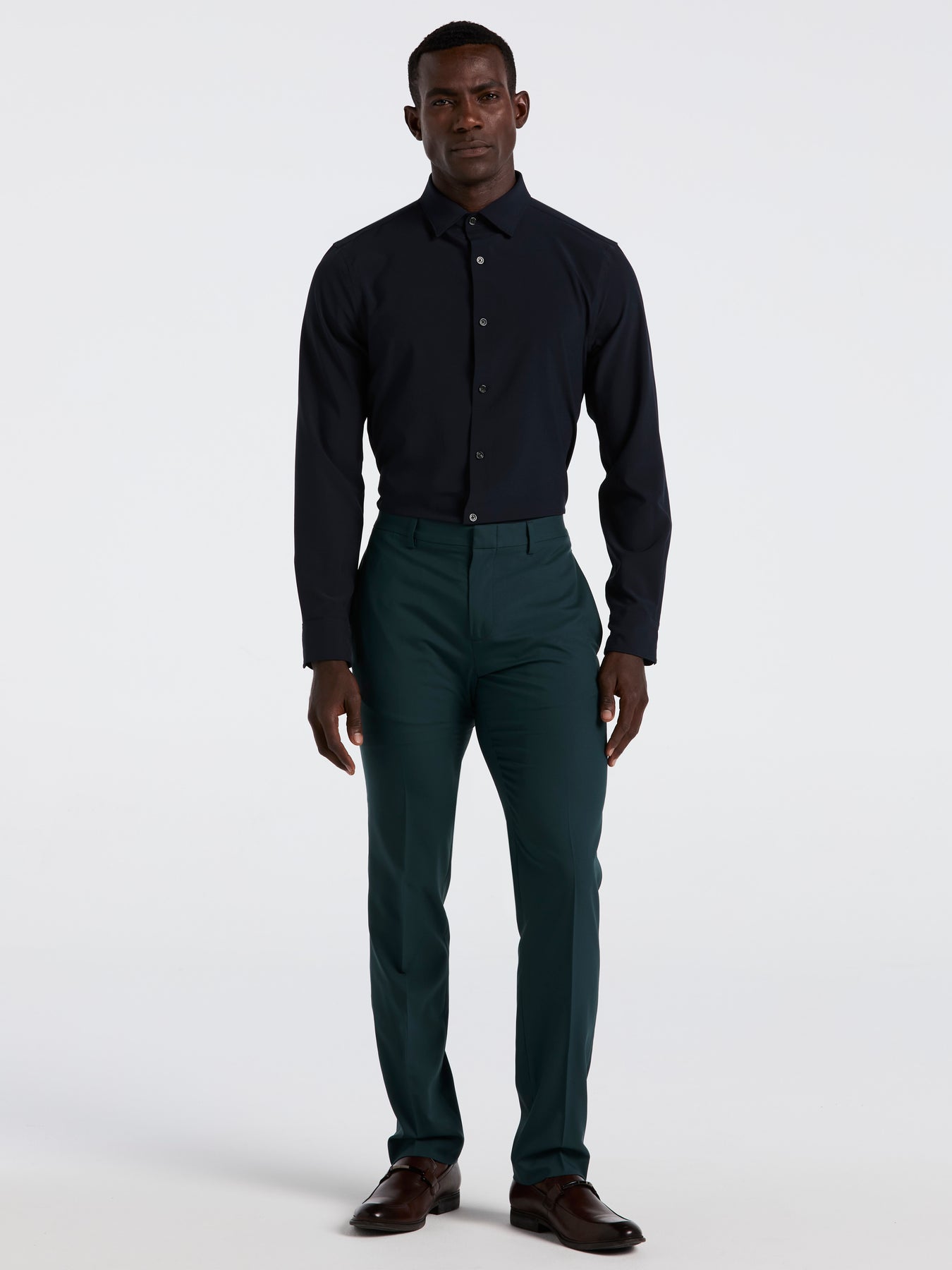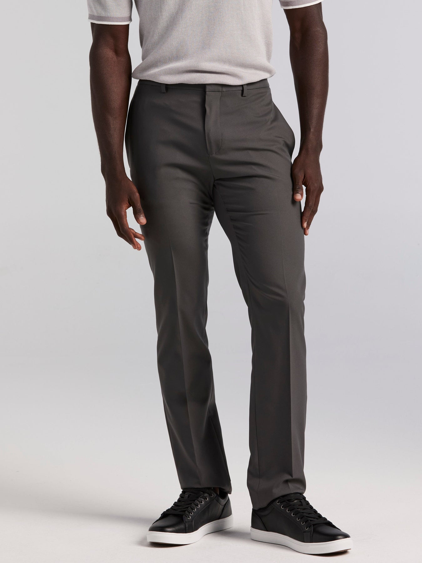 Featuring a sleek flat front, these men’s dress pants from Perry Ellis will be a smart choice for both the office and after-hours wear. The slim fit dress pants are crafted from lightweight twill fabric, for comfort in any weather conditions. A hint of stretch in the material lets you bend and crouch without feeling constricted. An interior waistband helps to keep them in place, while open pockets at the front and zippered pockets at the back add convenient spaces to store small items.