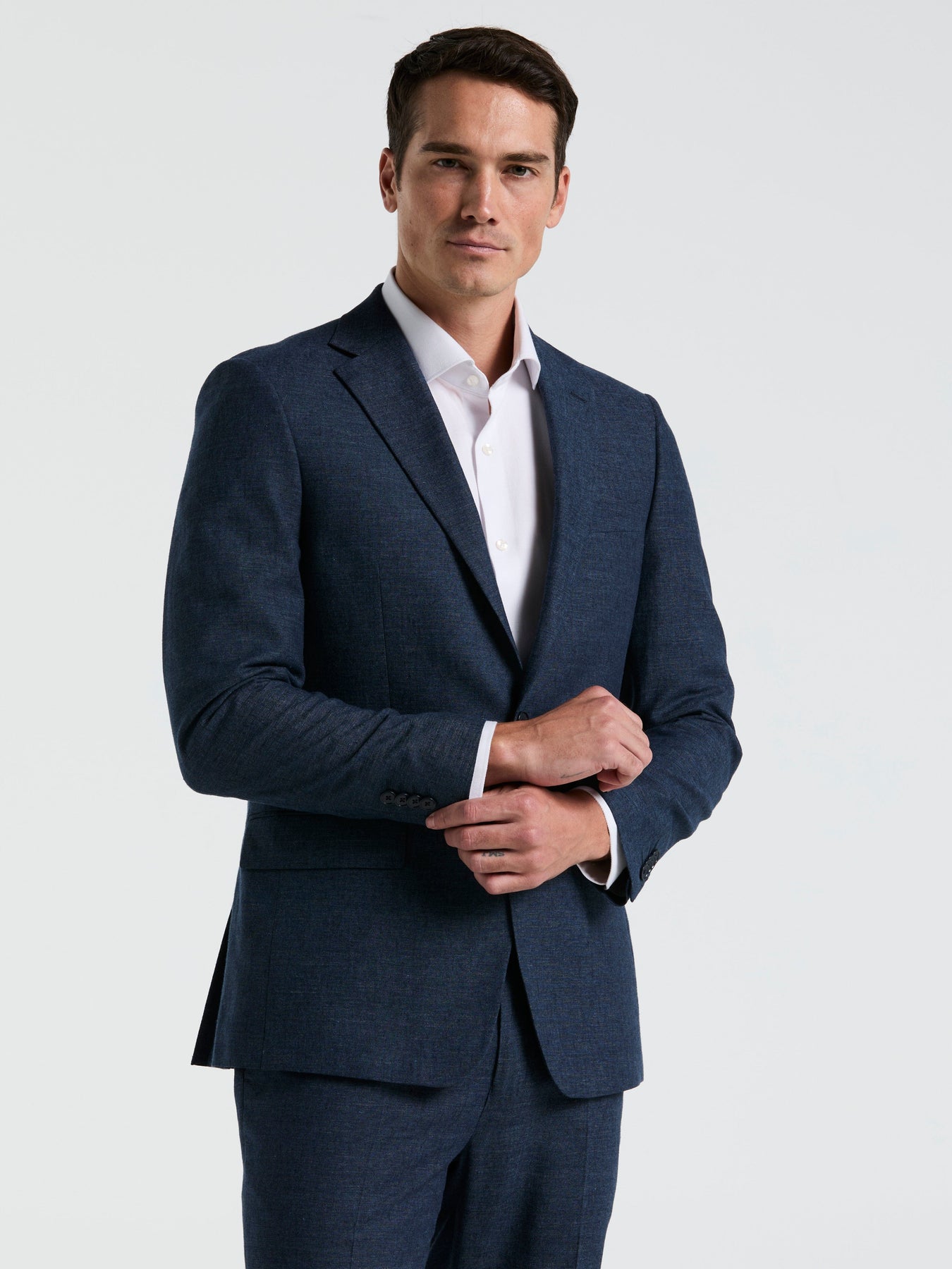 This linen-blend men's suit jacket by Perry Ellis is a wardrobe staple that's perfect for warm-weather days at the office or special occasions. The solid color design makes it easy to style with a range of shirts, so you can dress it up or down. This blazer for men is finished with a slim fit and narrow lapel for a clean, modern silhouette.