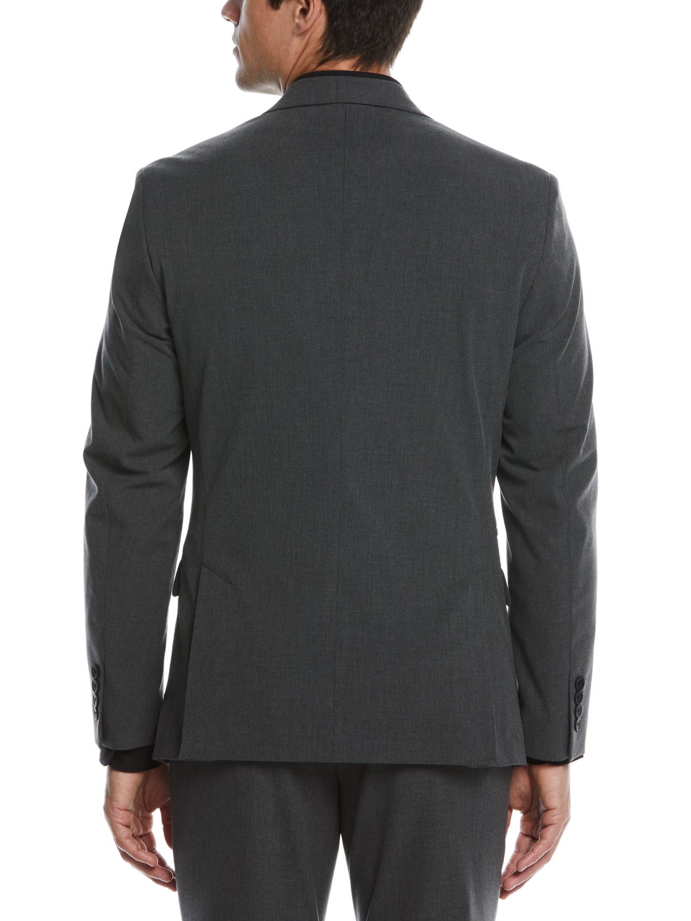 Add a suave second layer to any outfit with this Perry Ellis tech jacket. The men’s jacket is crafted from a textured fabric that will add eye-catching contrast when paired with a smooth, freshly pressed shirt. The material has 4-way stretch to help it move with you comfortably throughout the day. The sports jacket is finished with three welt pockets on the front, and a zippered ticket pocket to keep important items neatly separated and secure.