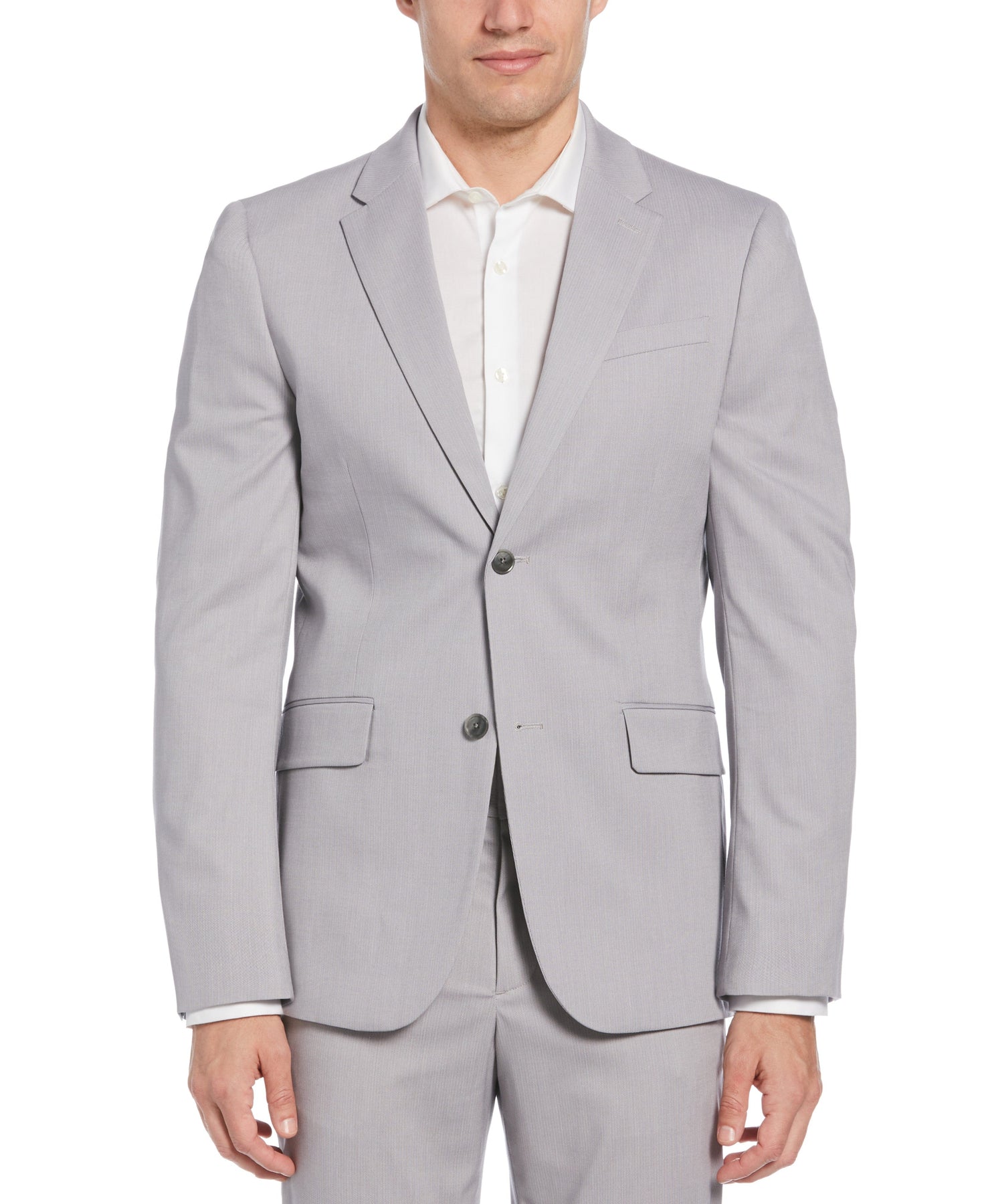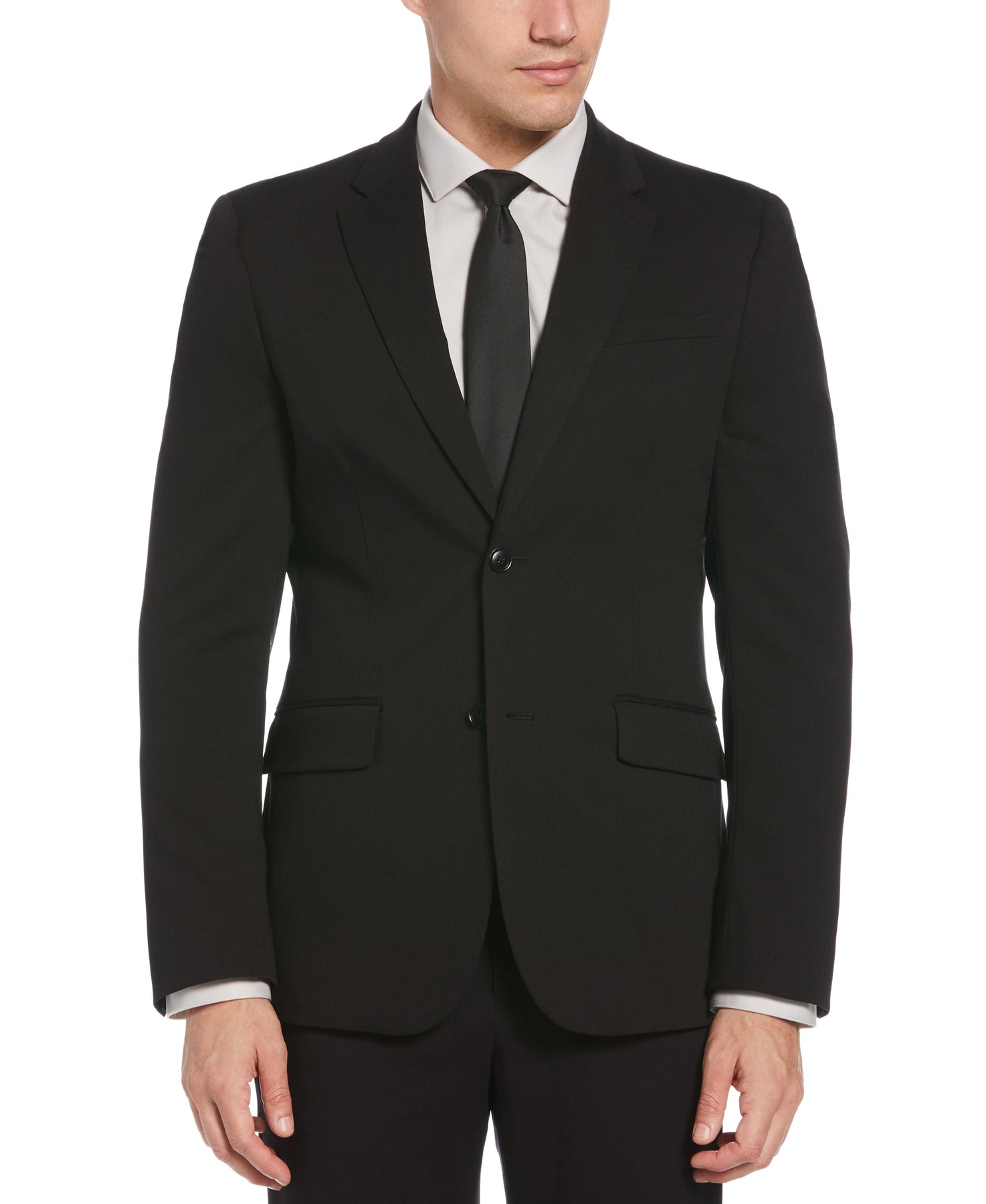 For a suave look that stands up to coffee spills, reach for this water-resistant Perry Ellis men’s suit jacket. A comfortable and practical blazer for men, it features performance stretch to help ensure a flexible fit. The jacket features a chest pocket and two flap-closed front pockets to keep important items close during business events. Novelty fabric adds eye-catching style to the design, while narrow notched lapels provide a classic finishing touch.