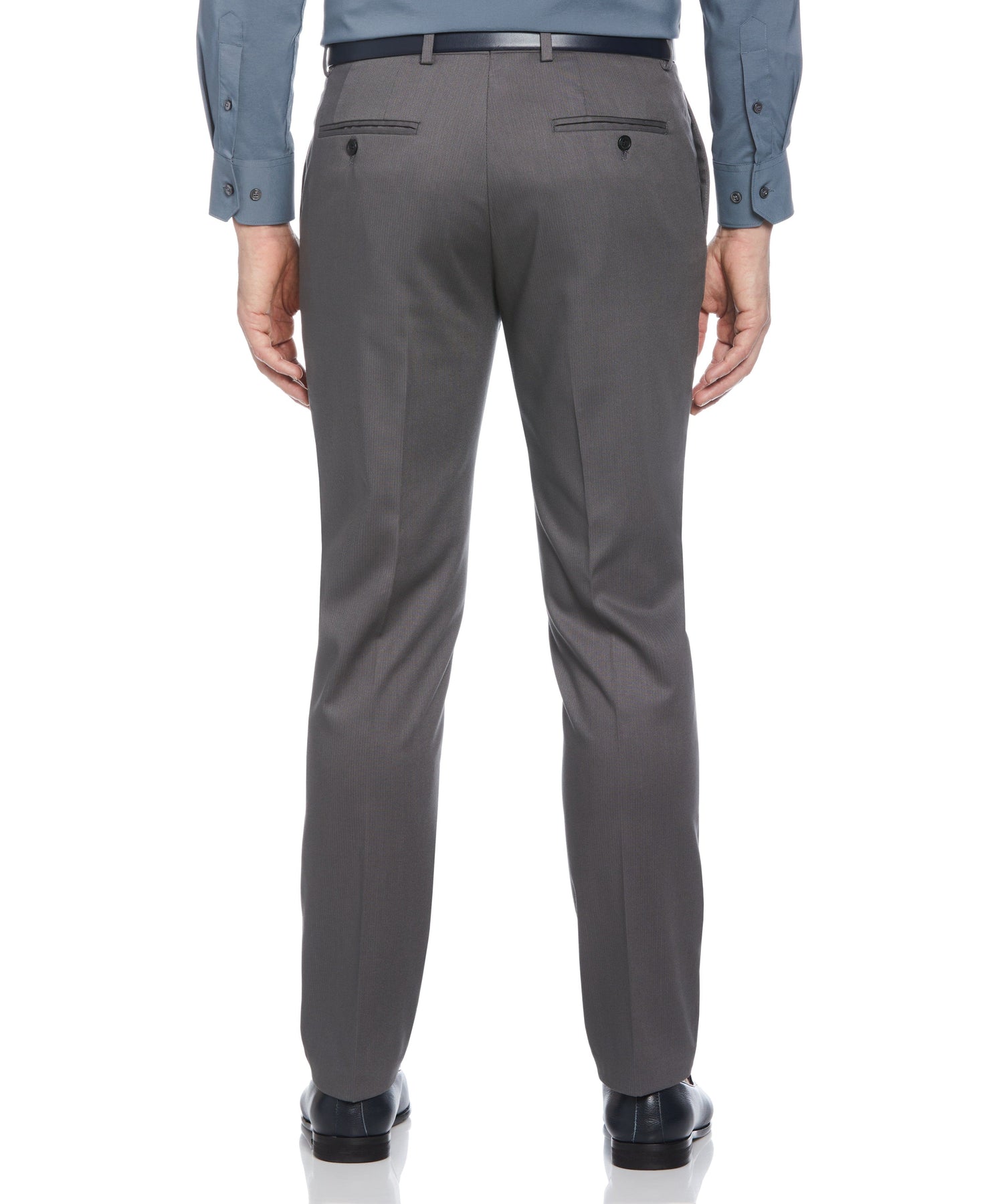 Keep your look sharp throughout the workday or at important formal events with these practical suit pants from Perry Ellis. The men's dress slacks are water-resistant to help prevent rain and spills from seeping into the material. The fabric features performance stretch to help it move with you comfortably throughout each hour of your busy day. The slim fit dress pants feature front and back pockets, as well as a hidden tech pocket that helps to keep small valuables secure while you’re on the move.