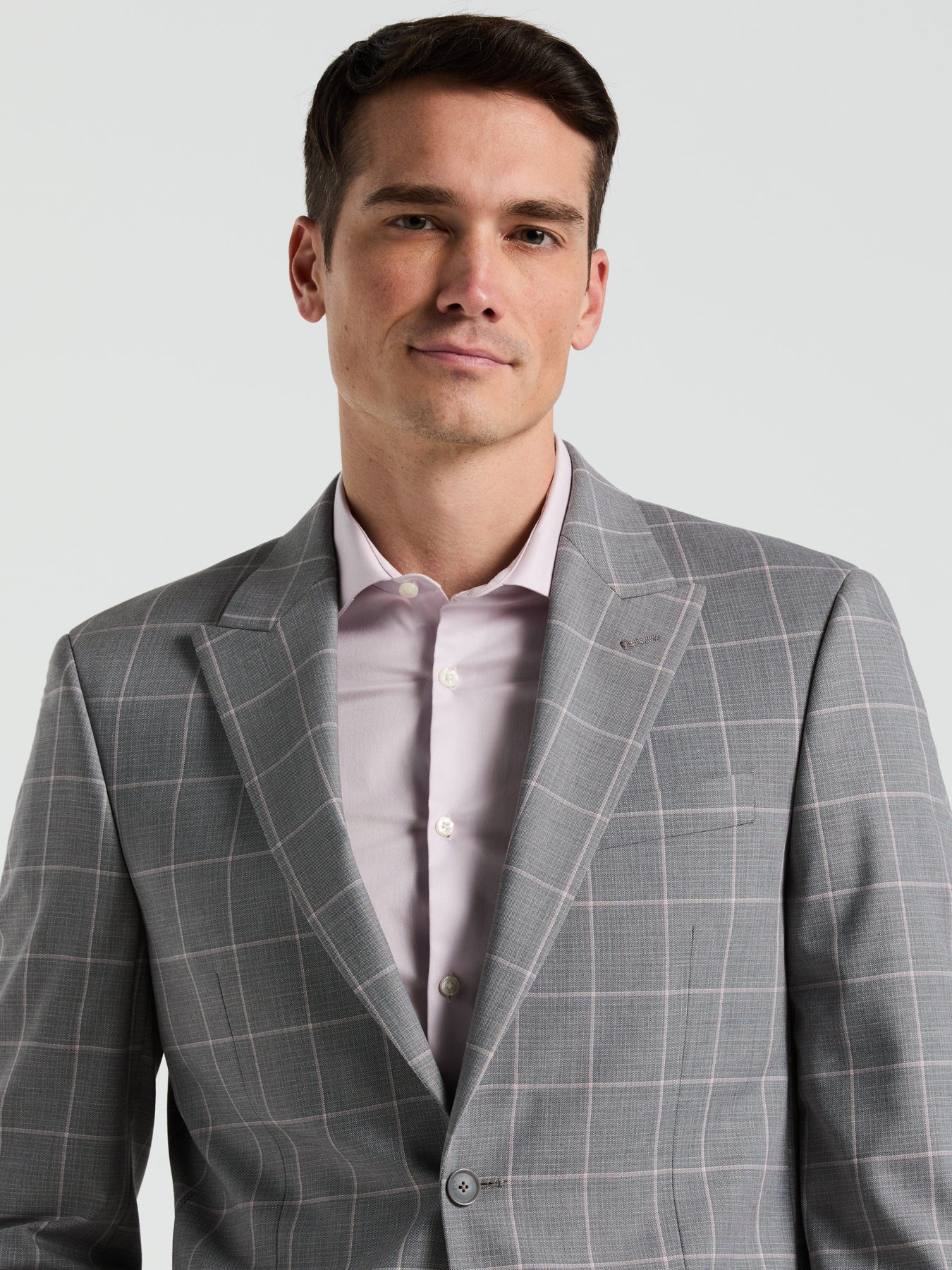 Slim Fit Windowpane Pattern Suit Jacket (Grey/Pink)