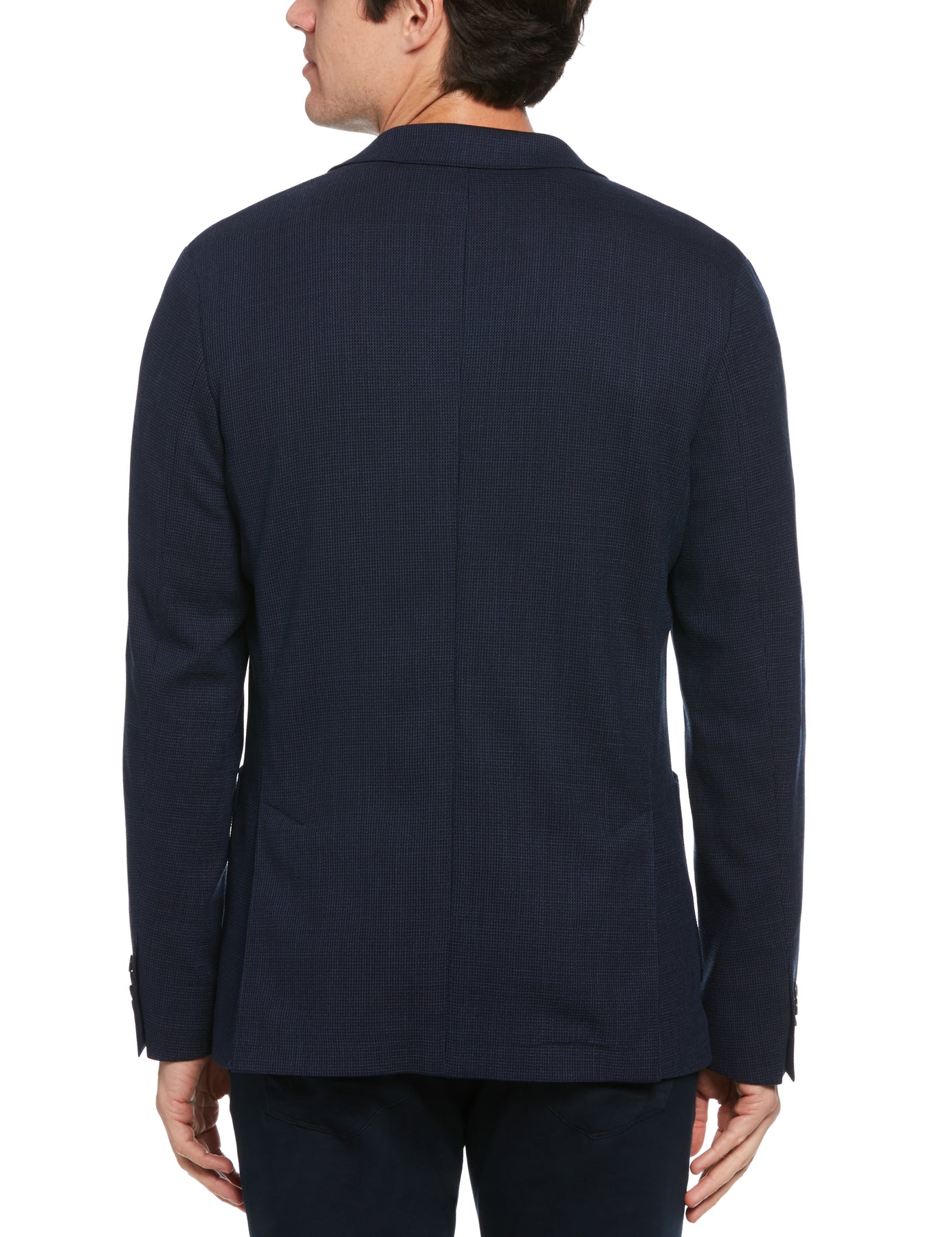 Clean, contemporary lines define this versatile Perry Ellis men's suit jacket. A smart addition to your office wardrobe, the eye-catching textured jacket can mix and match with everything from dress pants to denim. The slim fit profile tapers in the torso and waist for streamlined silhouette. The wool blend fabric breathes and offers a hint of stretch, making this men's blazer a comfortable option for both work and after-hours wear.