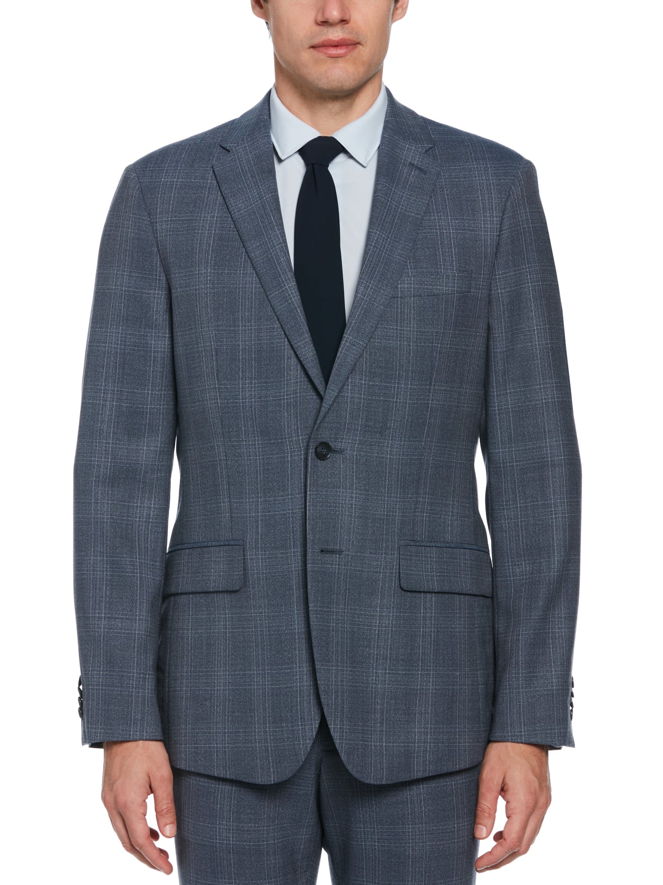 Dressing for work is effortless when you start with this Perry Ellis slim fit sports coat. This classic all-wool blazer features twill fabrication for a lightweight feel. A hint of added stretch helps to keep you comfortable when you're on the move. The notched collar detail and slim fit profile check all the boxes for classic men's business wear. Pair it with denim jeans or slacks for a sophisticated casual look.