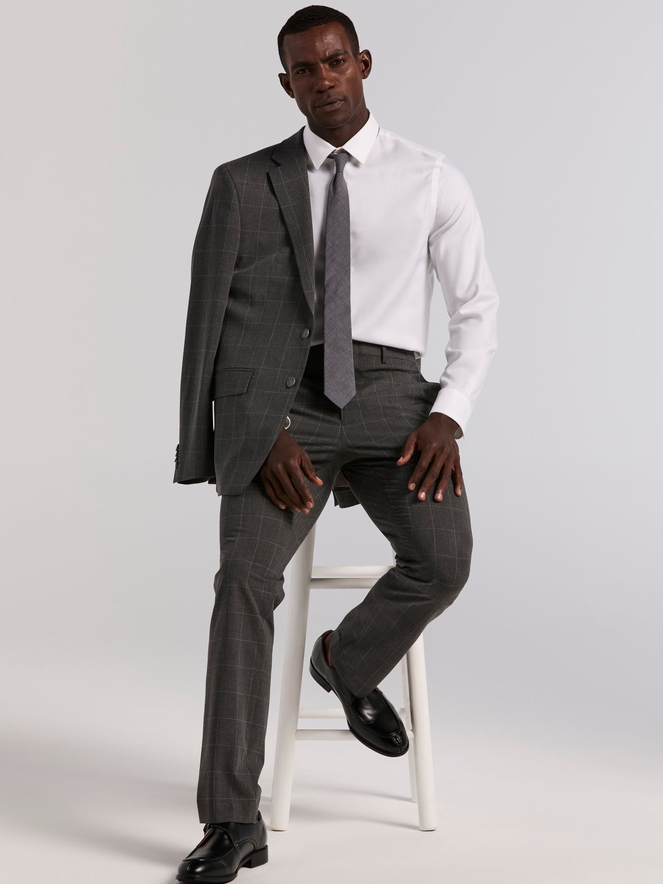 Give your dressed-up look stylish flair with these Perry Ellis men's suit pants. Featuring a windowpane pattern, these dress pants add a pop of style that complements your professional or formal look. A hint of stretch makes these suit pants comfortable and easy to move in.