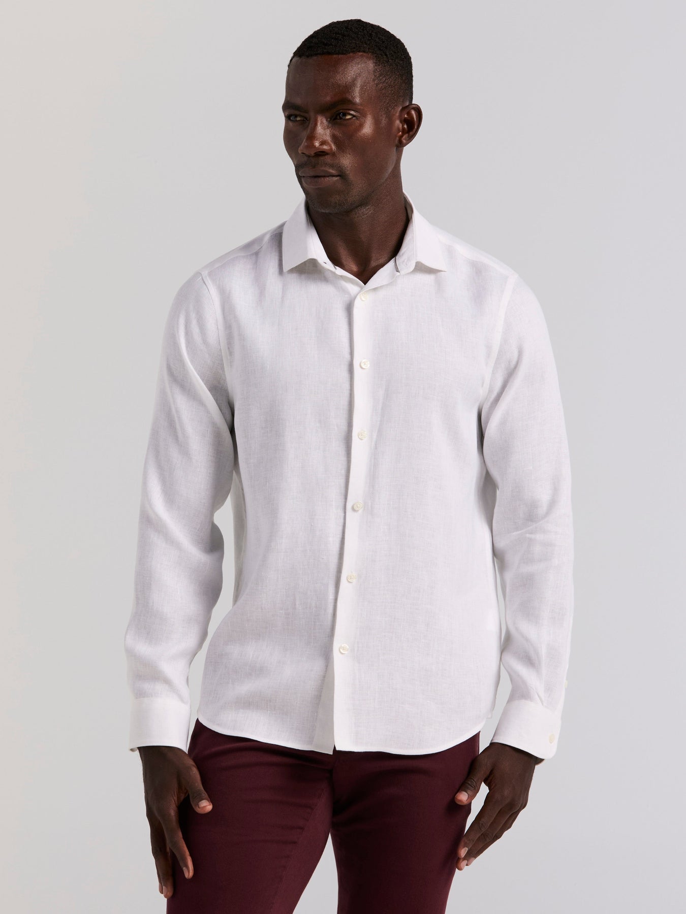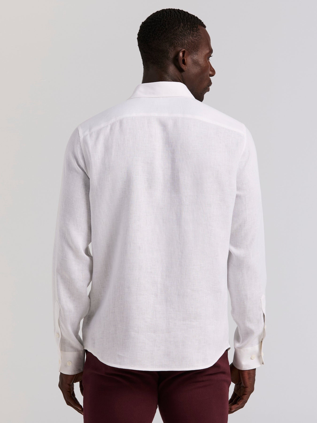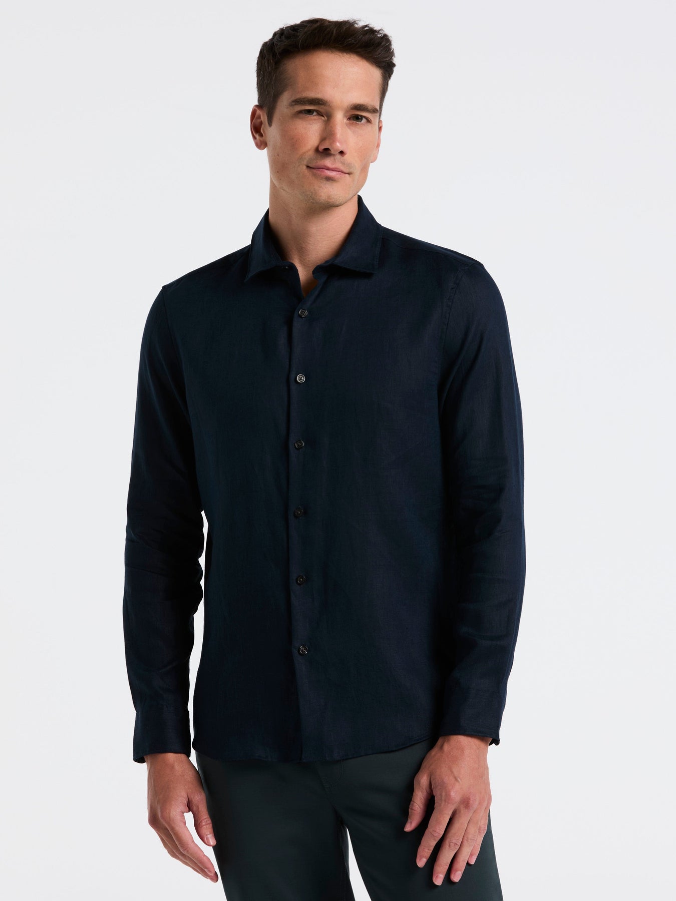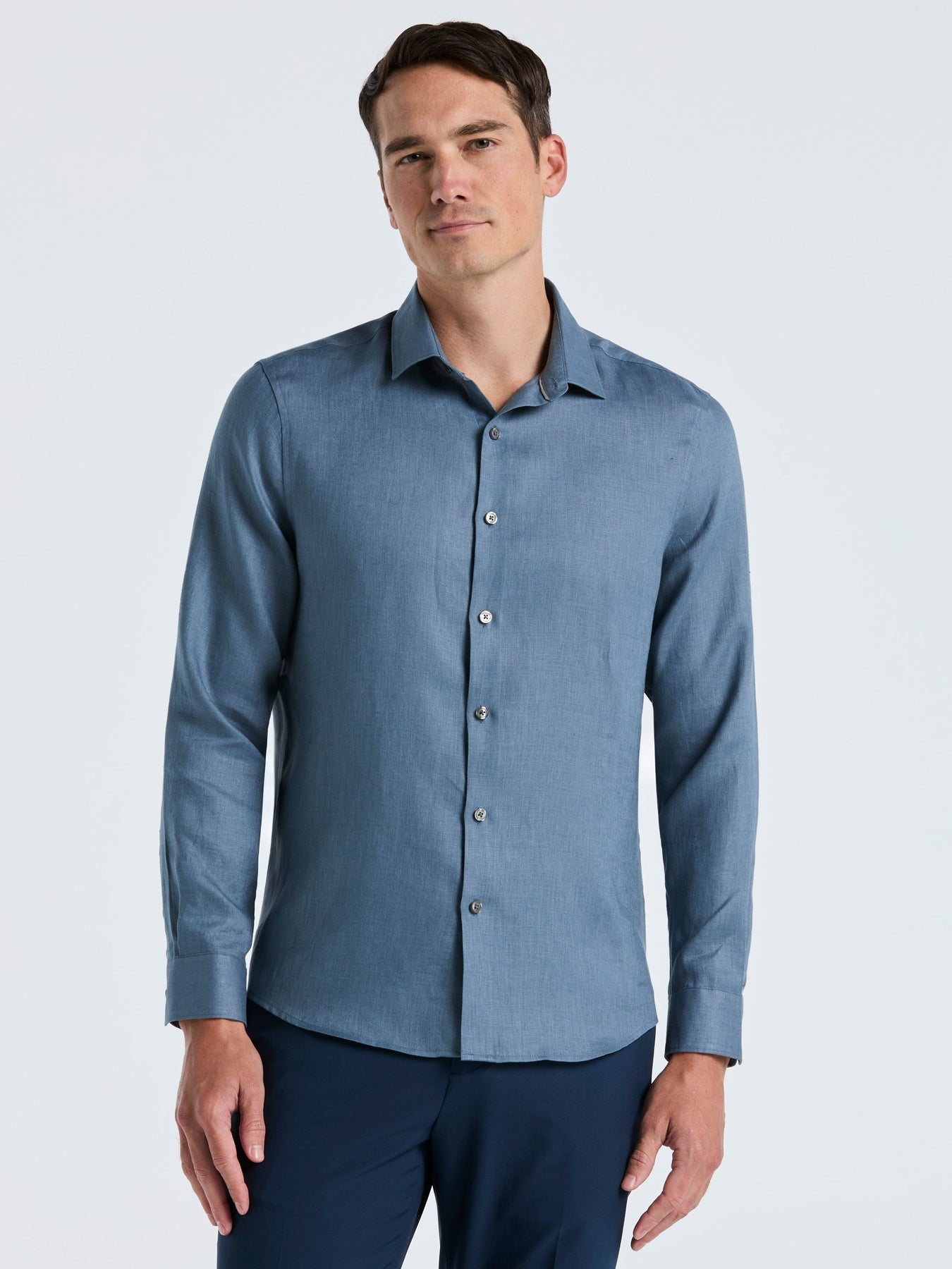 Update your everyday or office wear with this long sleeve button-down shirt from Perry Ellis. Featuring durable plain weave fabric and a solid color design, this linen shirt offers versatility and lasting wear, making it a great choice for smart-casual outfits. The polished spread collar keeps your look on point.