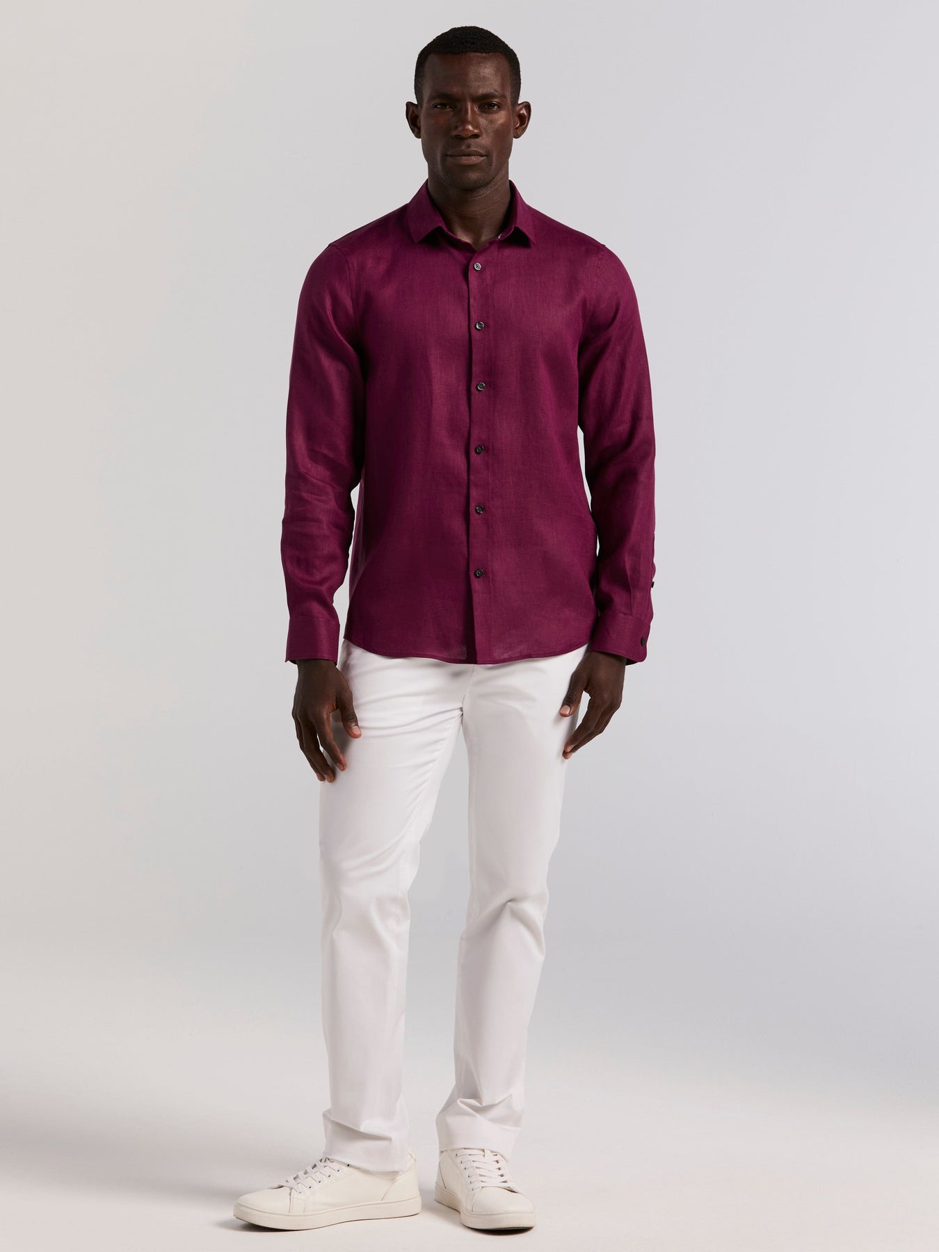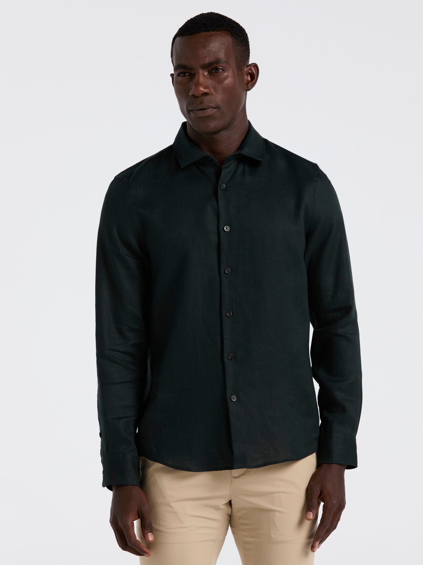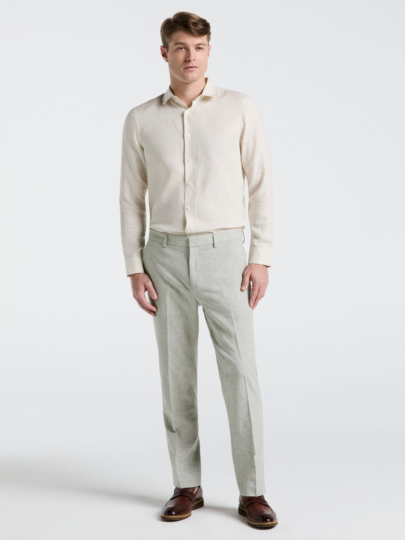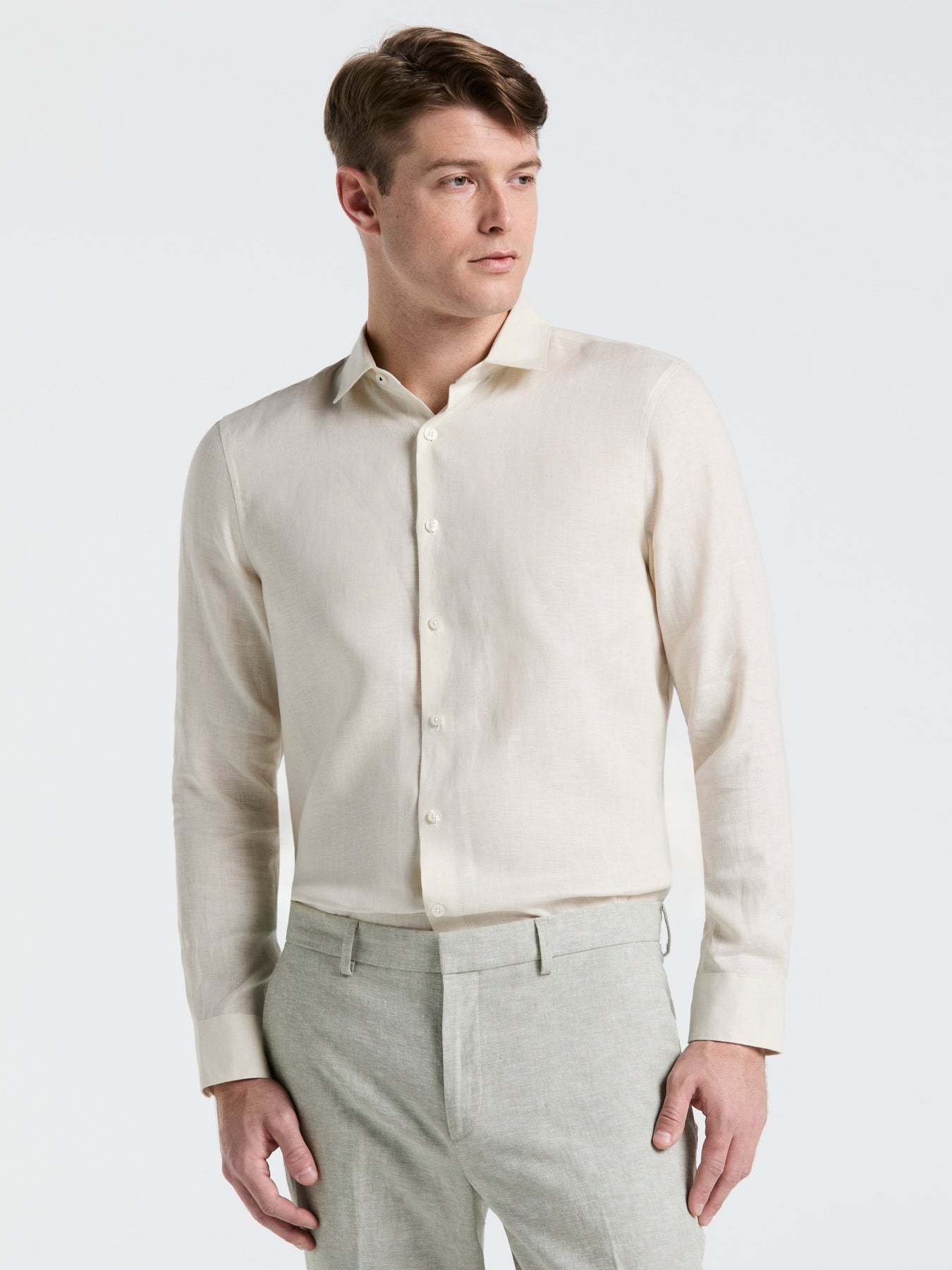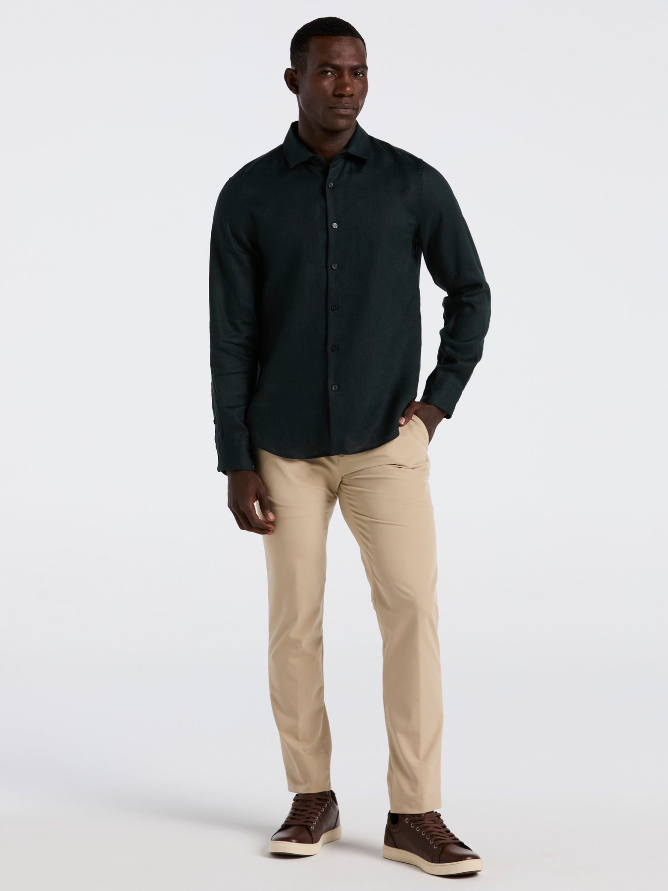 Update your everyday or office wear with this long sleeve button-down shirt from Perry Ellis. Featuring durable plain weave fabric and a solid color design, this linen shirt offers versatility and lasting wear, making it a great choice for smart-casual outfits. The polished spread collar keeps your look on point.