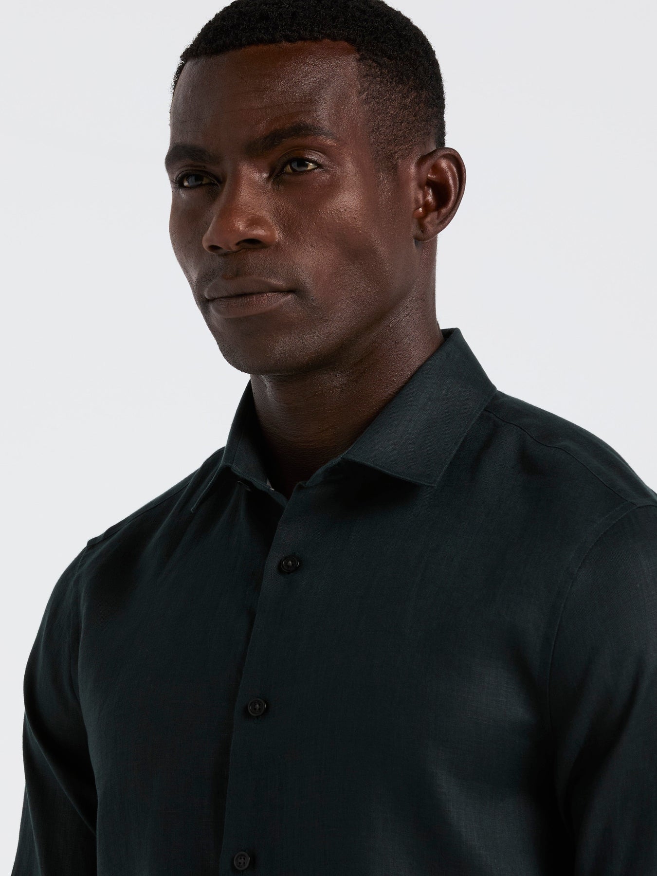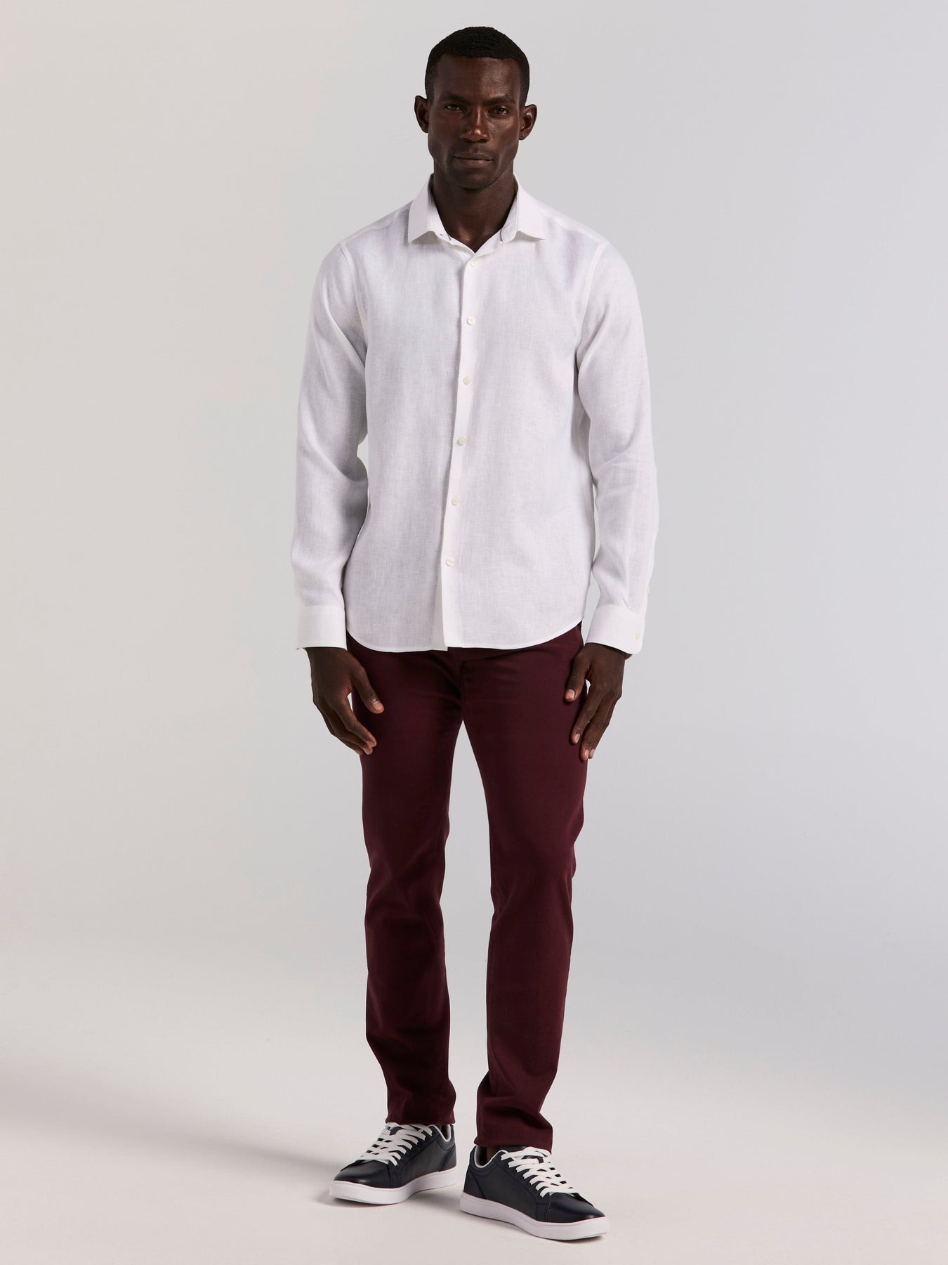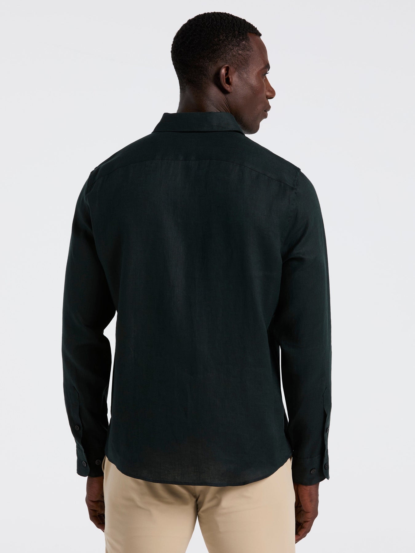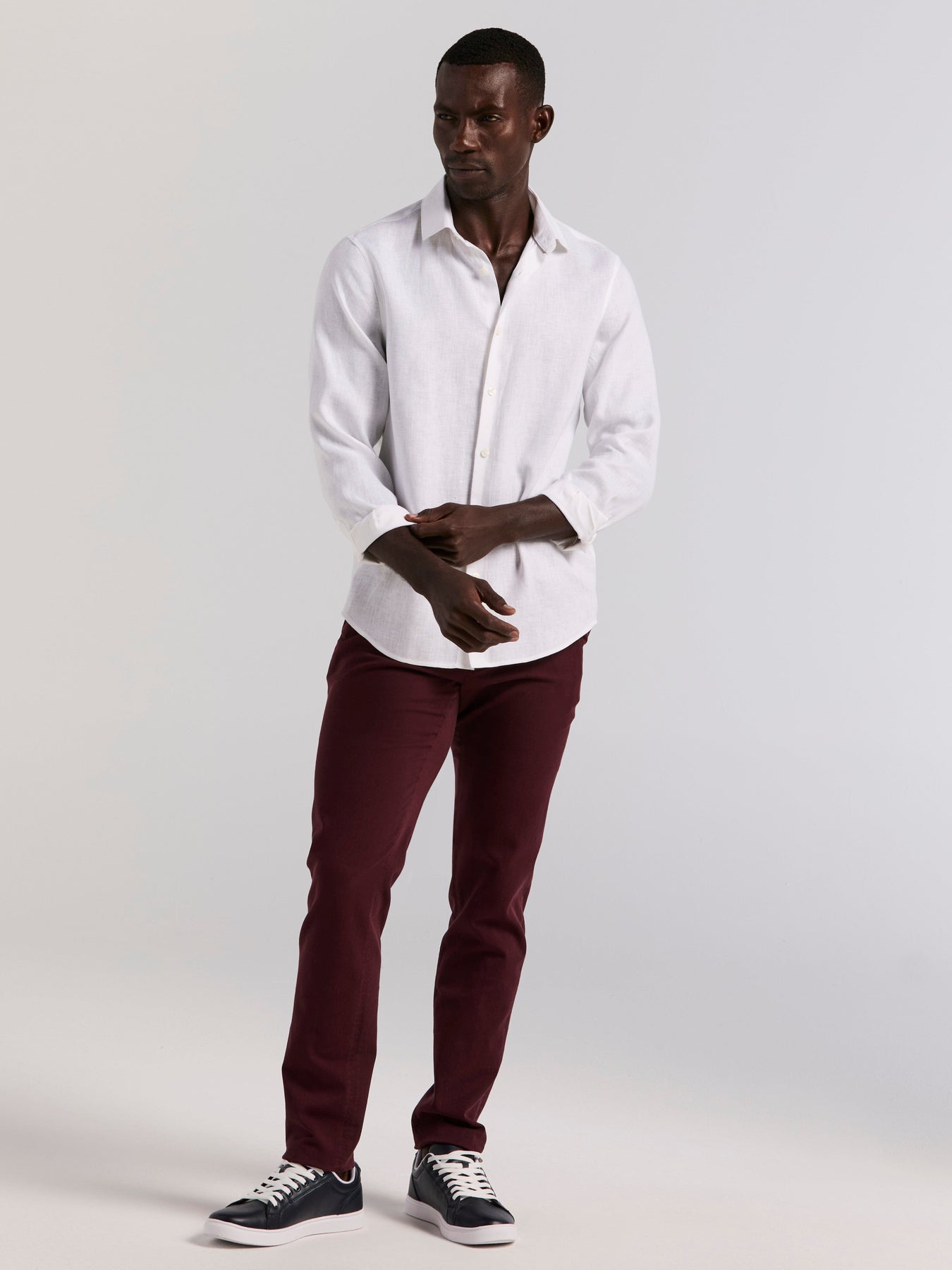 Update your everyday or office wear with this long sleeve button-down shirt from Perry Ellis. Featuring durable plain weave fabric and a solid color design, this linen shirt offers versatility and lasting wear, making it a great choice for smart-casual outfits. The polished spread collar keeps your look on point.