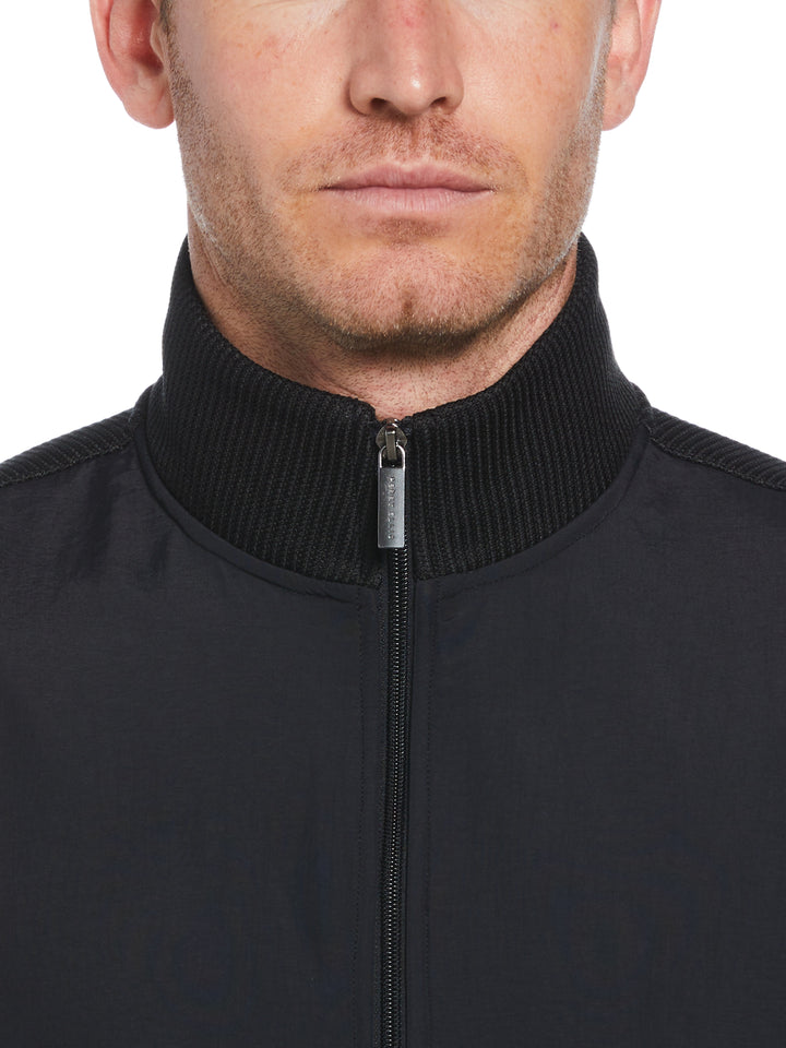 Whether you're venturing into the wild or simply to the end of the driveway, this Perry Ellis men's black fleece vest will get you there in comfort and style. The sharp men's vest features durable nylon fabric on the front and back yokes, and the material is backed with fleece for lightweight warmth and exceptional softness. A storm flap over the placket helps to prevent cold winds and rain from blowing in through the zipper, while a hint of stretch in the fabric allows you to bend and move freely.