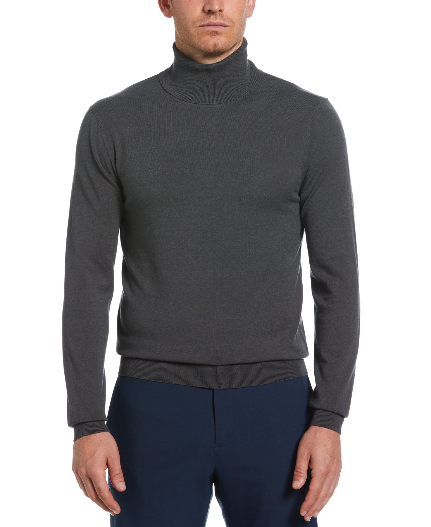 This men's turtleneck sweater from Perry Ellis has a sleek, flattering fit and supremely comfortable design. Moisture-wicking technology keeps you feeling dry. Stretch in the material lets you move with ease and ribbed cuffs, hem and neck offer a casual finish. Geared to your sustainable lifestyle, the sweater's soft and smooth fabric contains viscose fibers derived from sustainable wood pulp.