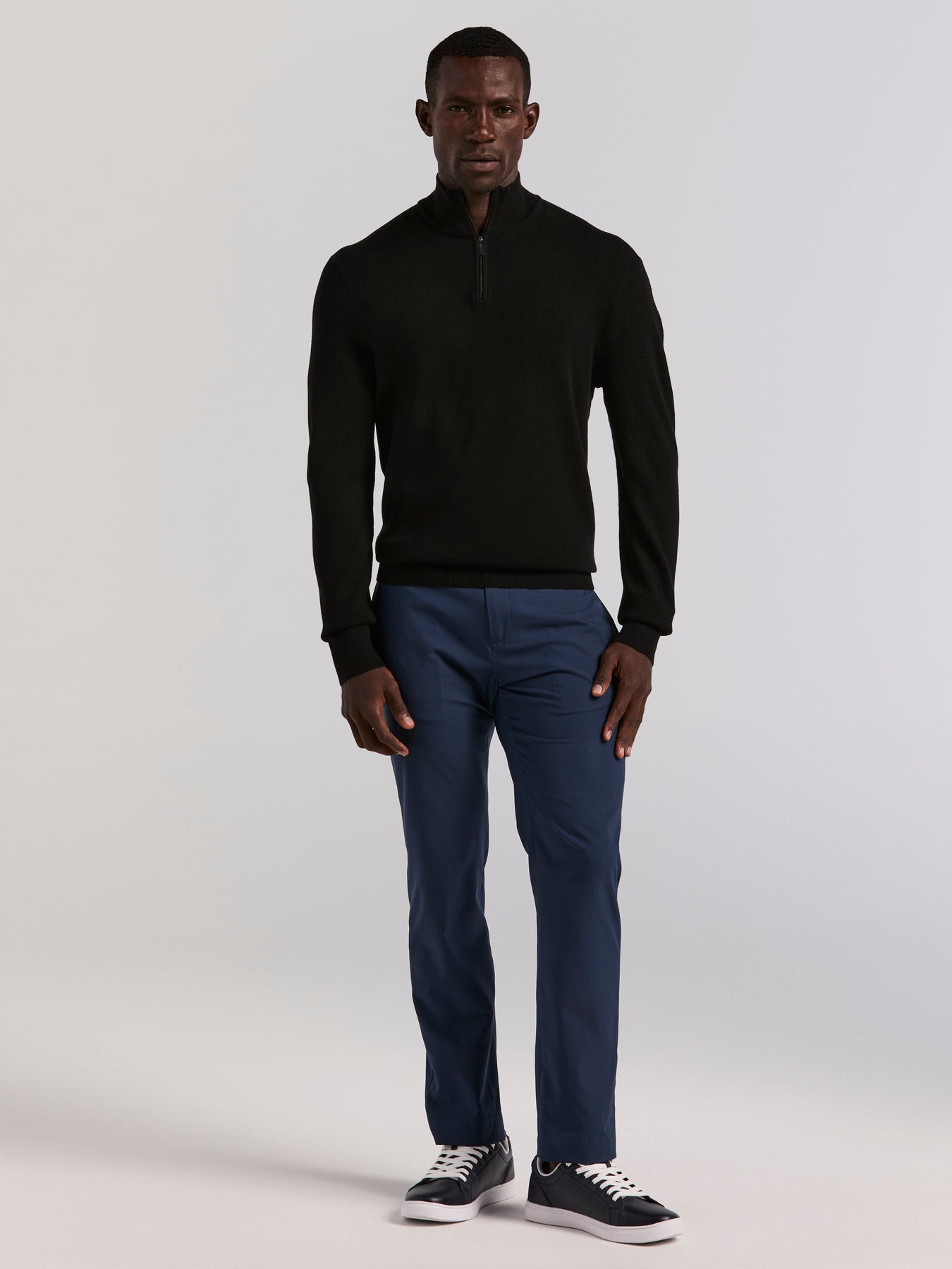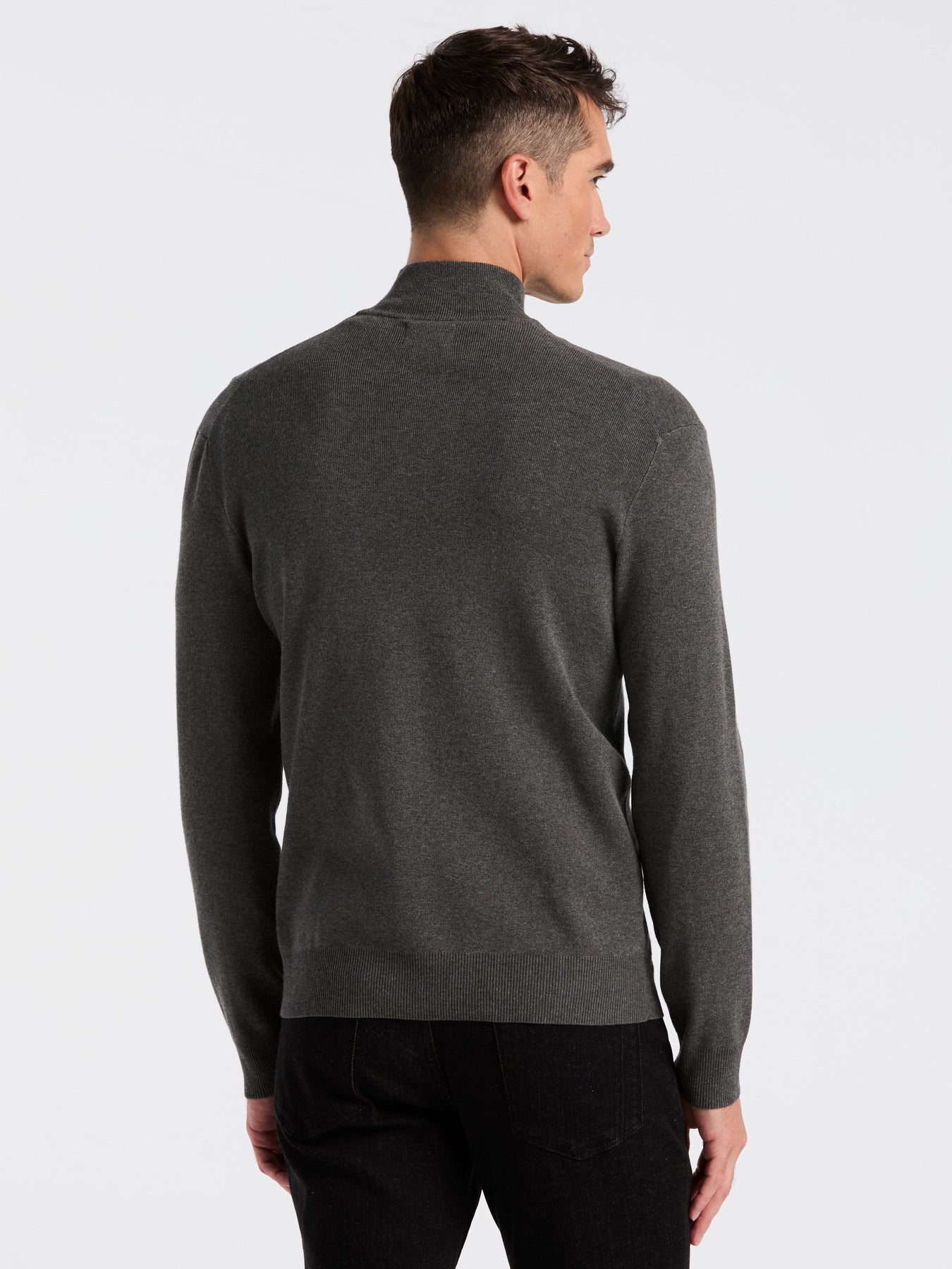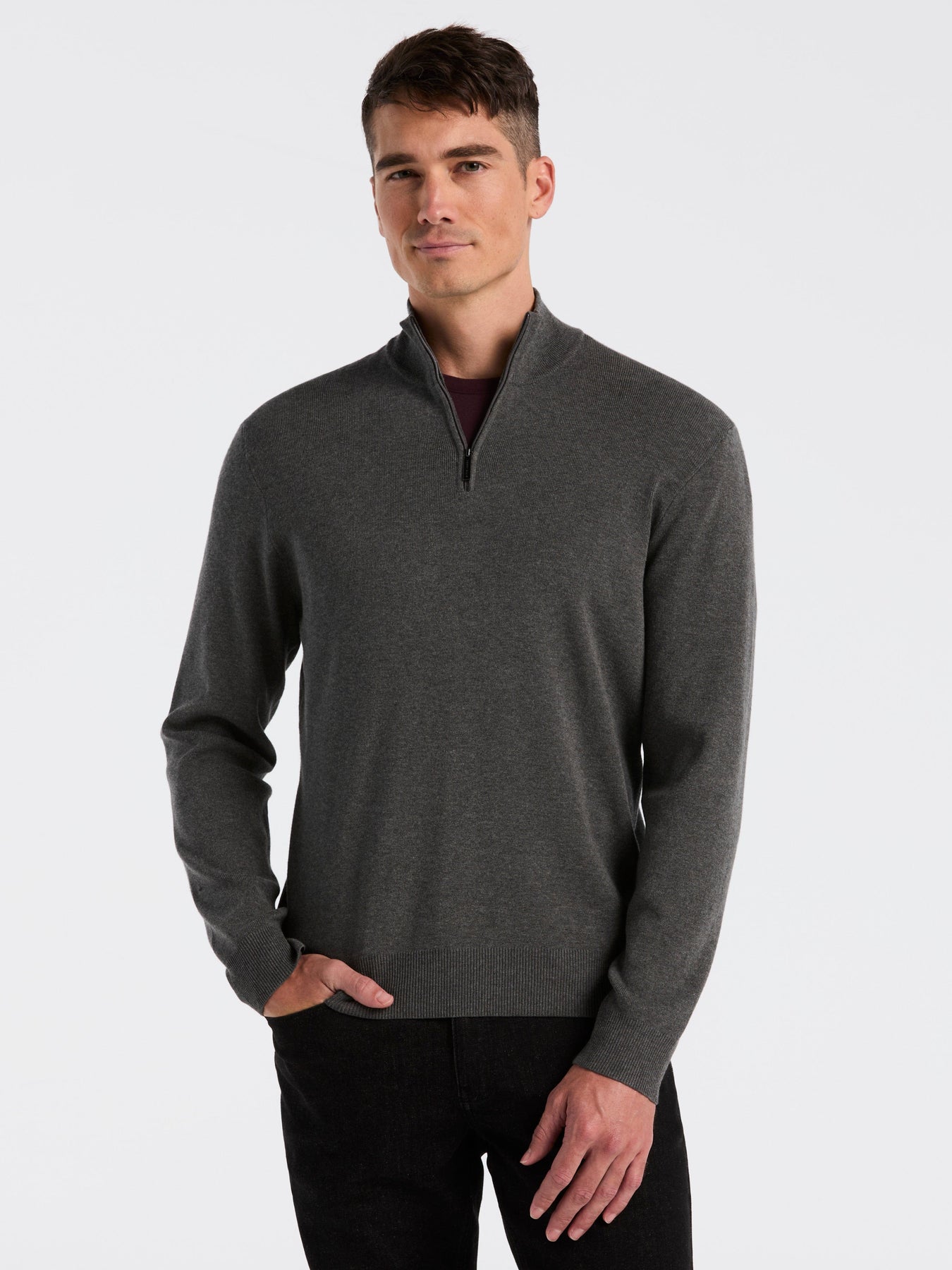 Great for a smart casual look, this men’s sweater will add some valuable extra warmth to any outfit. The comfortable men’s sweater is made from a soft fabric that’s heathered for a stylish two-toned look, and it’s machine-washable for easy care. The ribbed mock neck features a quarter zip, making it easy to get on quickly.