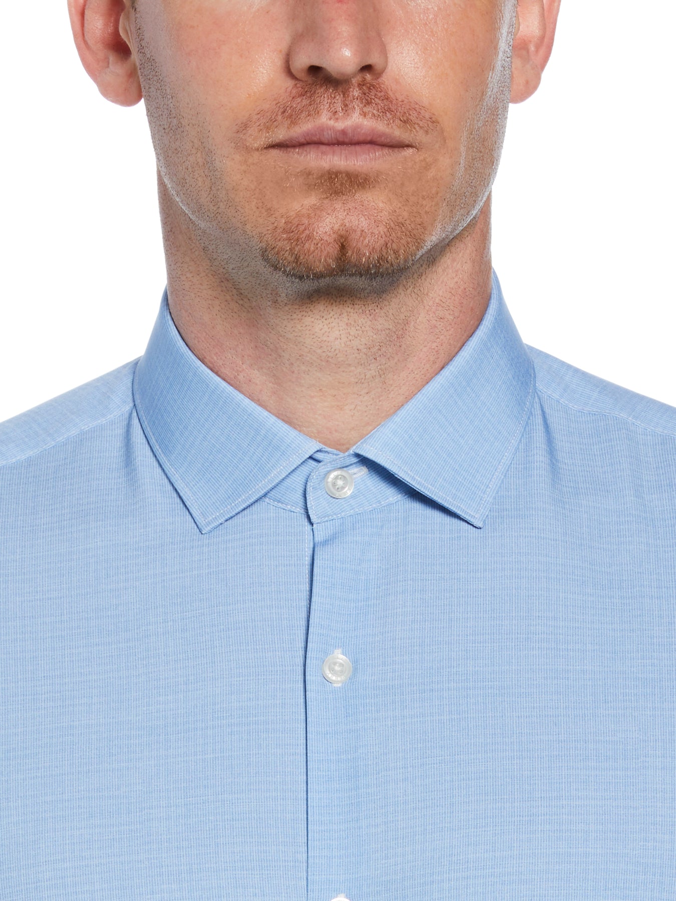 Made for versatile wear, this Perry Ellis men's dress shirt is the perfect choice for any important event from summer weddings to business meetings. Featuring a sleek silhouette, this button-down shirt offers modern style that adds a refined touch to your look while the solid color design makes it easy to pair with a range of suits. The durable fabric is enhanced with stretch for a comfortable fit and feel.