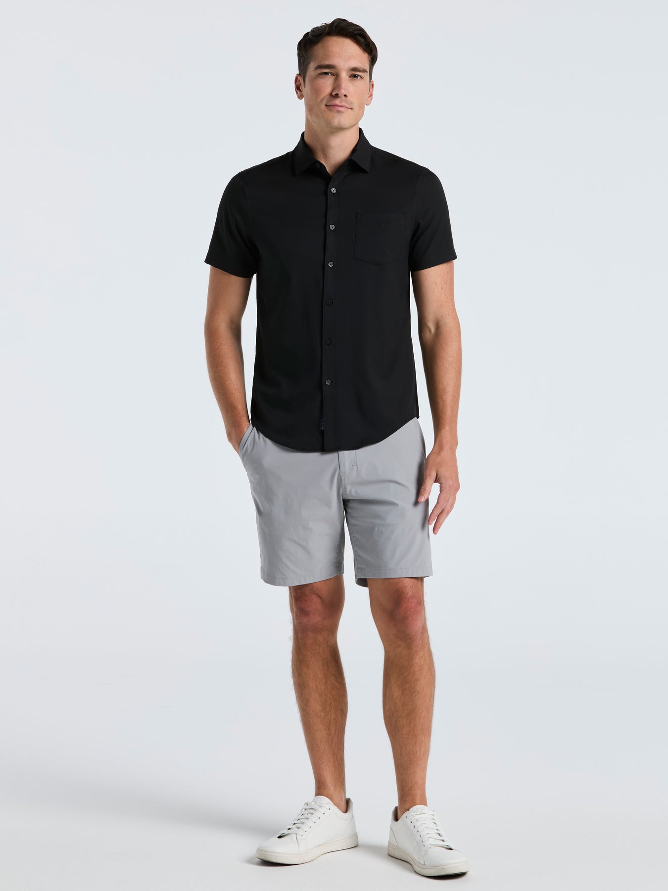 Great for everything from family dinners to a sunny stroll through the park, this Perry Ellis men’s button-down shirt is crafted from a lightweight twill fabric that’s comfortable in any weather conditions. Total Stretch lets you move freely in any direction. The versatile solid-colored design complements almost any pair of pants or shorts with ease. A sharp point collar and a chest pocket complete the classic casual look.