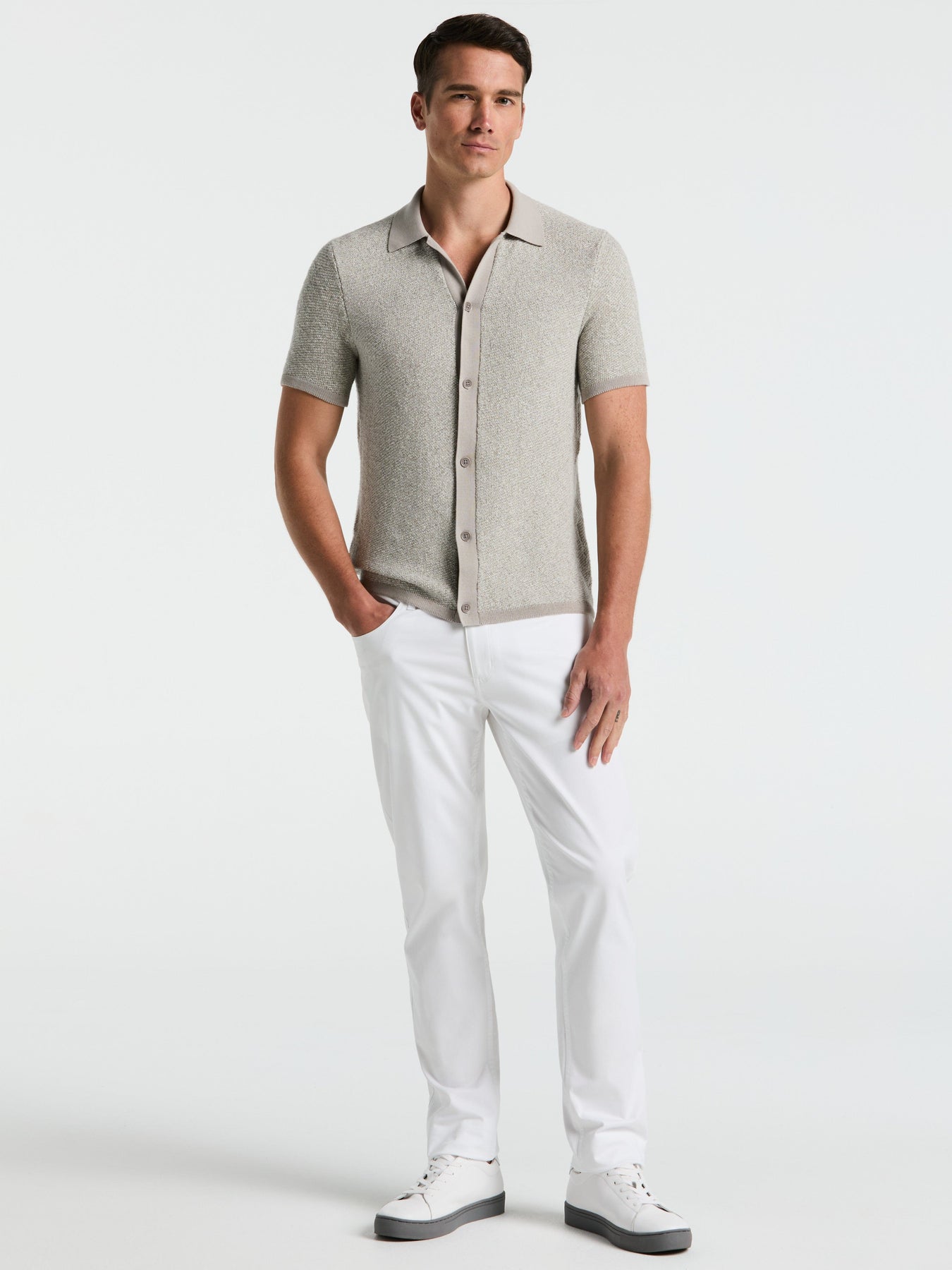 Enhance your style with this two tone polo sweater by Perry Ellis. Made from 100% cotton, this premium men's polo delivers breathable comfort. A bold printed design with contrast trim adds eye-catching style to any look, whether you're dressing up or keeping things casual. The button front offers added versatility for layering over a tee or tank.