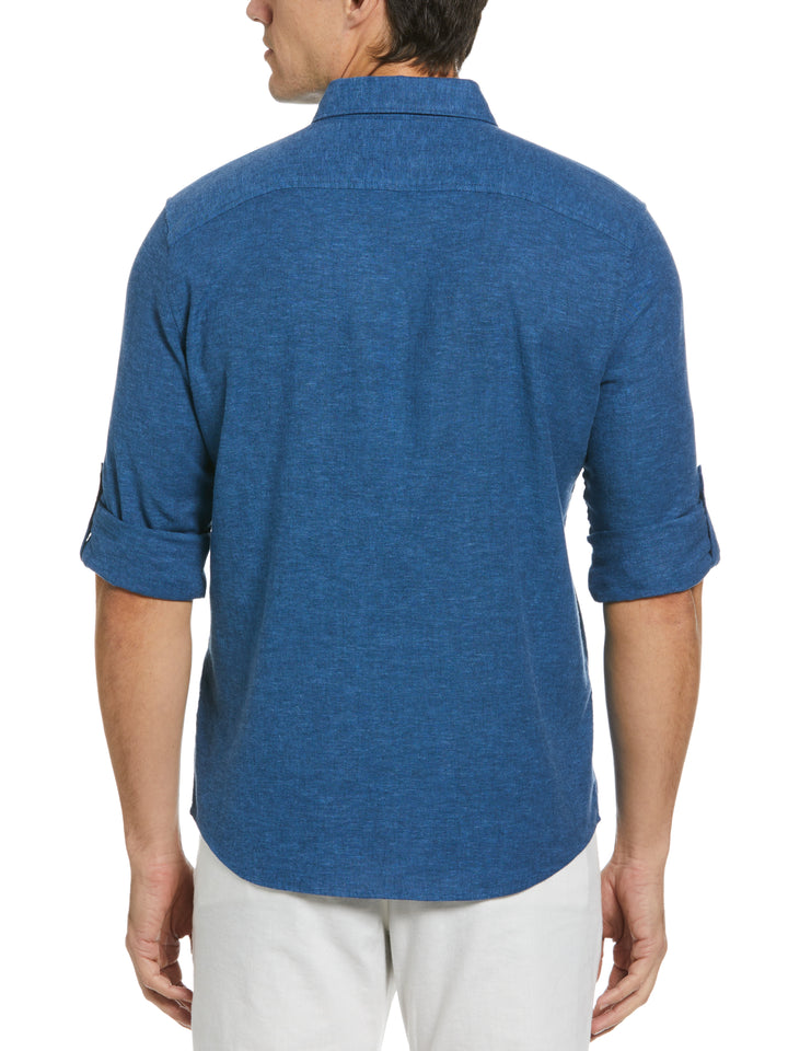Untucked Slim Fit Linen Blend Rolled Sleeve Shirt