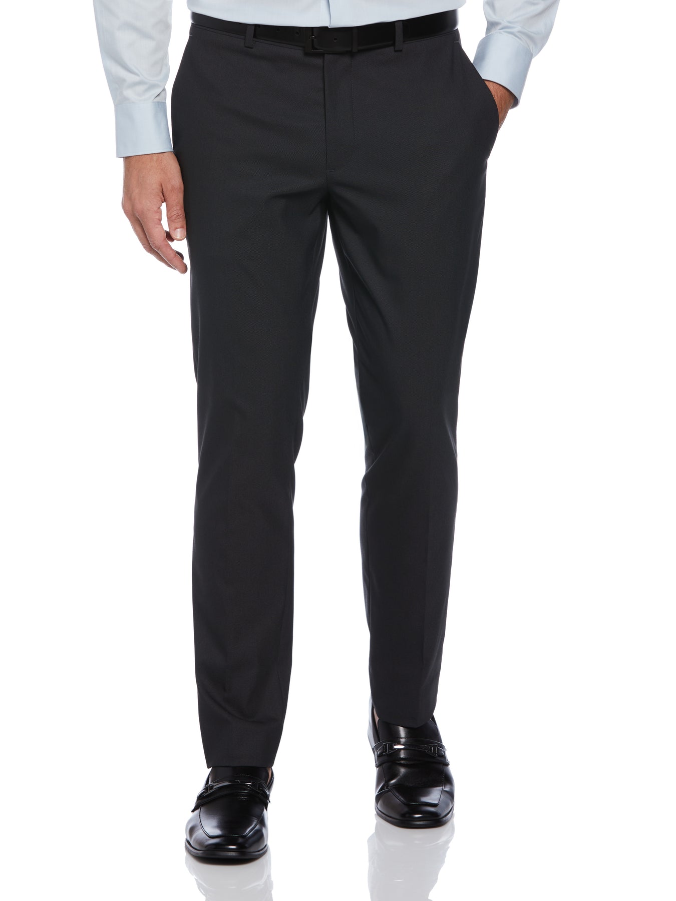 These Perry Ellis men's pants are made for both style and easy wear, making these trousers a great choice for your everyday wardrobe. Made with textured fabric for a great look and feel, these trousers for men also sport added stretch and a modern slim fit for a comfortable, sleek and flattering silhouette. Designed for convenience, these men's pants feature stain-release and wrinkle-resistant properties and are also machine washable for practicality and no-fuss care.